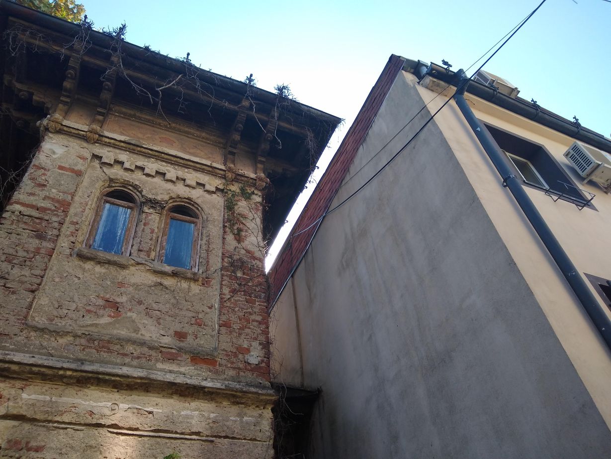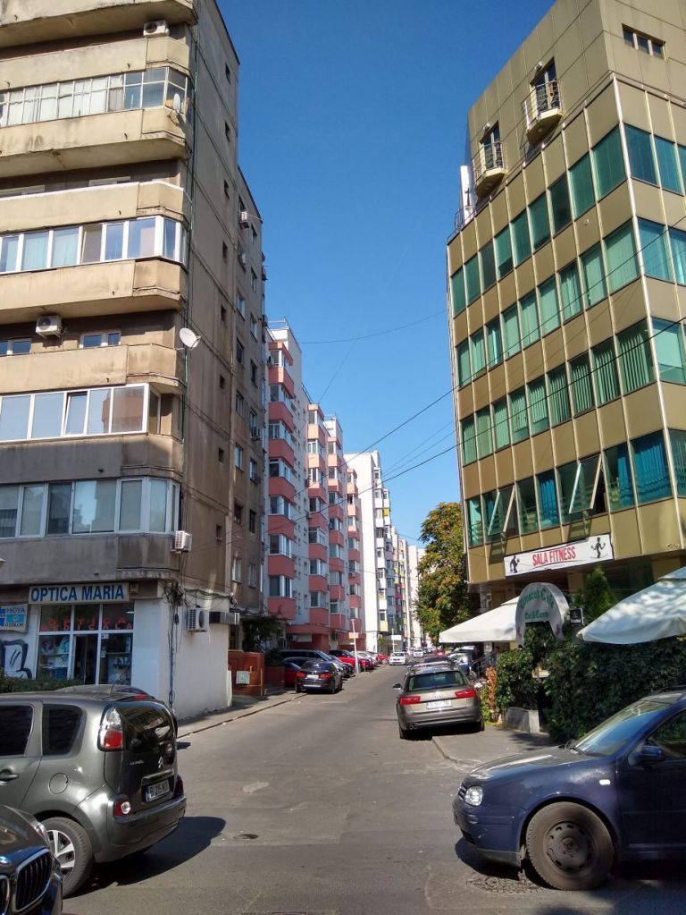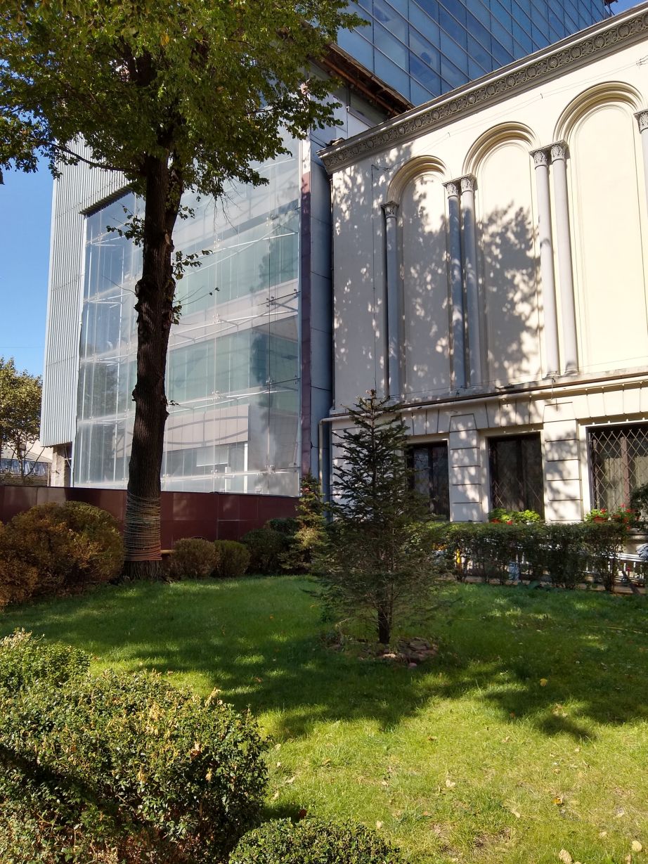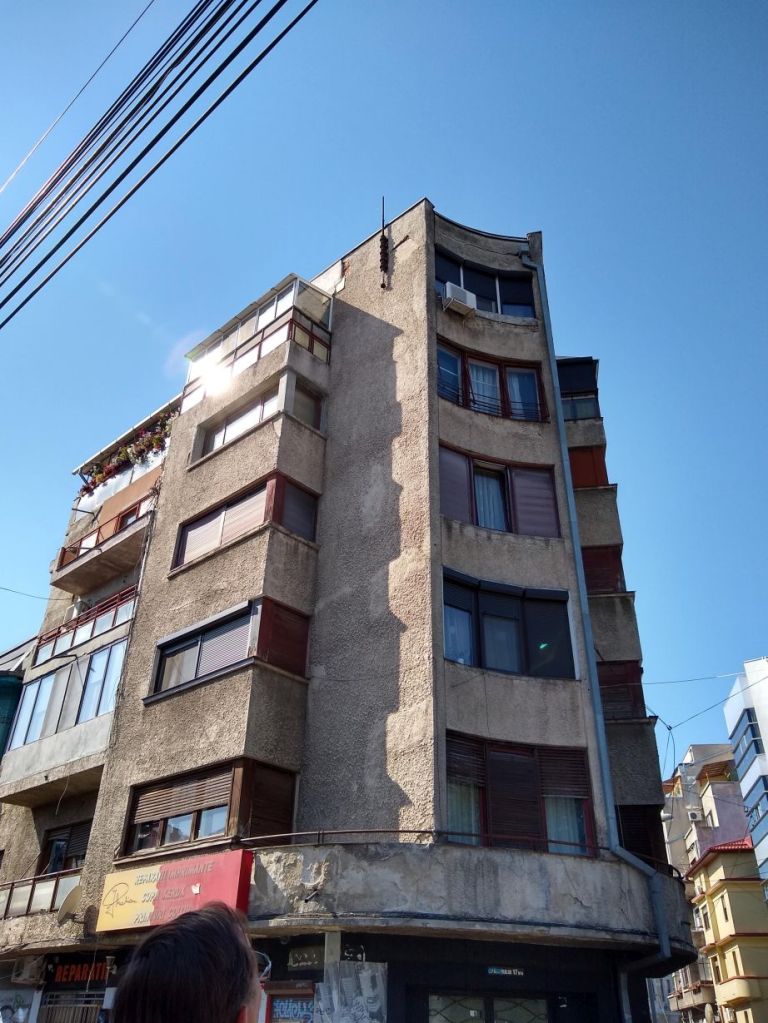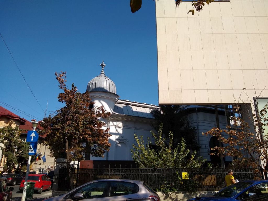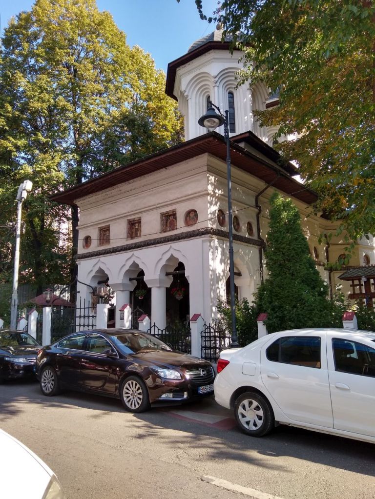 Heading out from the cafe, we make a circuit back to the more “modern” part of this area, along the huge corridors with the communist block style buildings. But before we fully emerge into the Communist era, we remain for a bit on the side streets with classic old churches grandly sitting next to totally modern angular buildings. Ever too quickly, though, our walk takes us to the apartment blocks that stretch as far as the eye can see. Our last stop here is a small Orthodox church that is surrounded by 8-10 story tall apartment blocks. This is one of the churches that was moved off the main avenue in order to build the communist apartment blocks. This and other churches and buildings were moved on rails, as was the building in Alba Iulia, and the man who invented the method, Eugen Lordachescu, was one of Cristina’s professors. Totally cool.