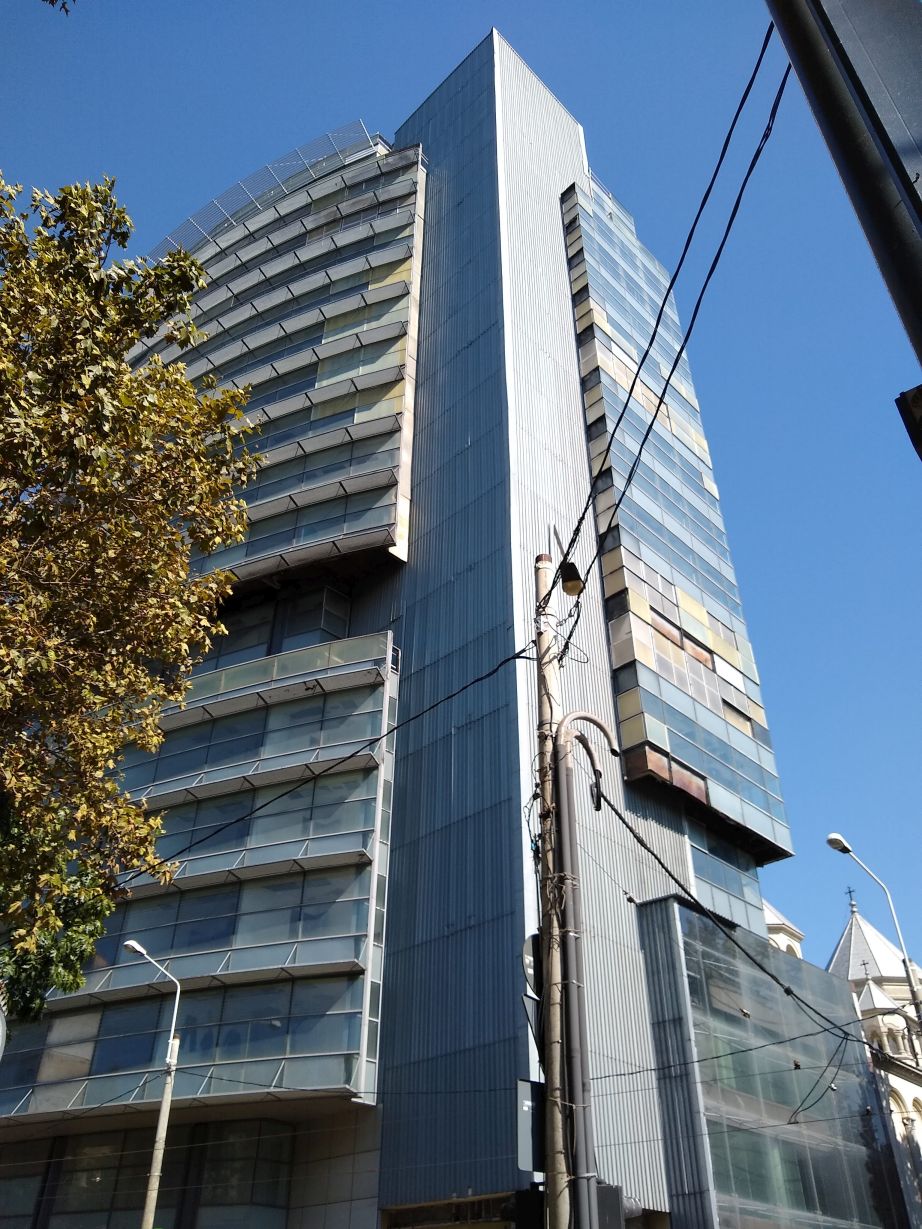 Pointing out Neo Romanian features which borrow from the Orient and Islamic architectural styles, with wooden arches over doors and a more peasant style building type, Cristina deftly navigates us through the Jewish ghetto district and on toward the Armenian mahalla. On the way, we pass this huge glass and glass and steel skyscraper that is not quite complete, and totally abandoned. This building, it turns out, was built illegally (corruption is everywhere!), it is too close to the Armenian Church (you can see it is almost touching the church), it is too tall (not what the approved plans showed), and there was a fire during construction, so it was completely abandoned. Now it is in the courts, fighting to get the builder to tear it down. If they rule that it was “illegally” built, it will be the developers responsibility to raze it, but in the past, builders have just ignored these rulings on other buildings and there are no checks and balances to force the builder to do the work.