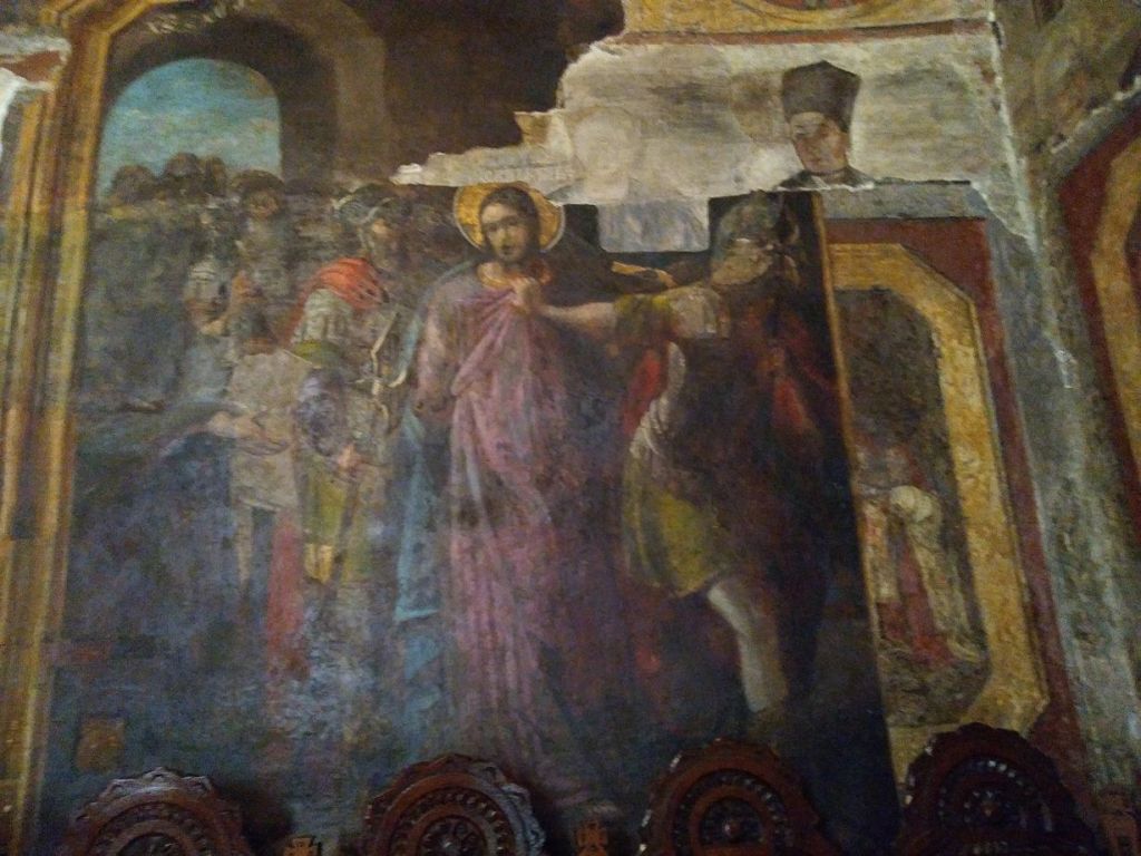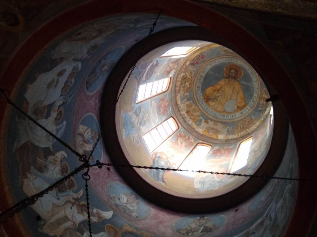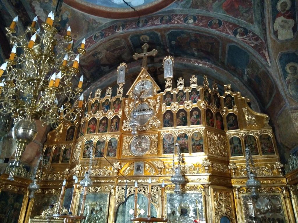This little church, dwarfed by its neighbors, is a beautiful reminder of how Communism couldn’t totally extinguish religion, but allowed the population to “practice” as long as it wasn’t too out in the open. The church has all the standard Orthodox features, the icons, the altar behind the sacristy, gorgeous stained glass windows, gold gilt everywhere and of course frescoes. It’s a lovely little peaceful sanctuary virtually thumbing its nose at its huge, stark neighbors.