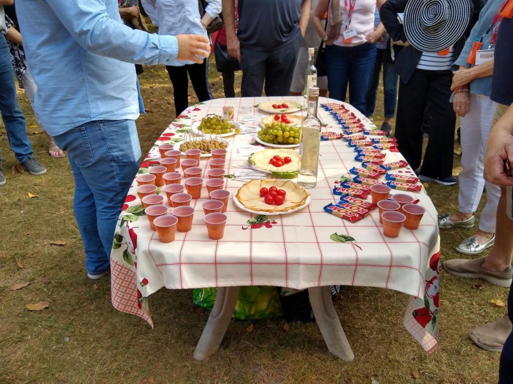 Then it is time for our “surprise” snacks! A table laden with those icky (for me) Rom candy bars and nasty liquor, but also with some very nice cheese, olives and grapes. The only problem is that everyone is eating with their fingers (except for the olives which fortunately have toothpicks), so you have to be extra special careful as to which piece of cheese or fruit you pick up (you can be assured the Purel is in my hand the entire time, although I do refrain from putting Purel directly onto the food, but I thought about it!). We tried to reuse the toothpicks for the cheese, but there is, of course, a general scrum for the food with people not exactly sharing making it terribly hard to juggle the Purel, the toothpick and the floppy cheese. Sigh. Group mentality!