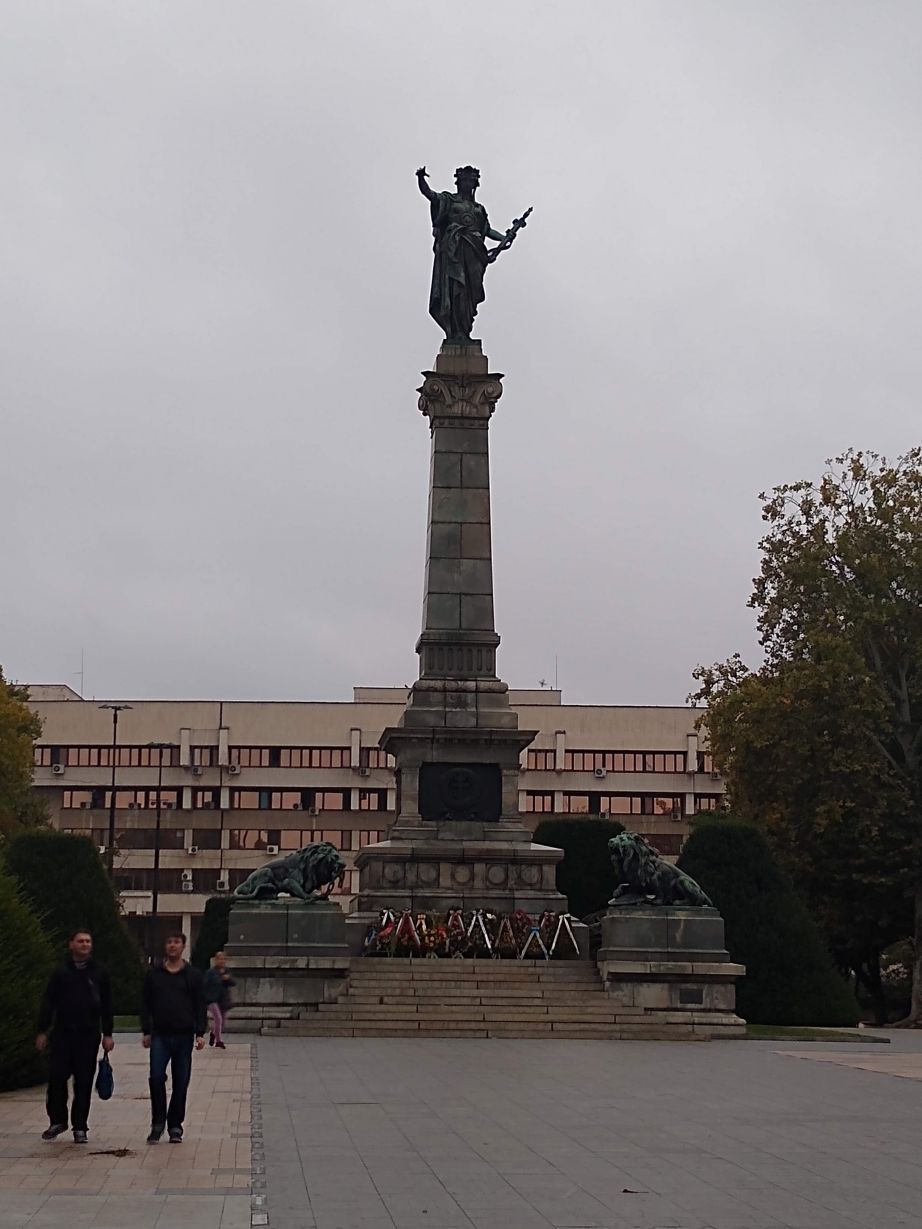 After a nice little walk, we arrive at Liberty square, considered the “new” square as it was built in 1880, supposedly on a former Turkish cemetery. We tour around the virtually empty square, which is a actually a lovely garden area, with the Statue of Liberty as its centerpiece. The statue was sculpted in 1908 with Liberty pointing north, toward Russia, because they came and defeated the Turks. The statue represents Bulgaria, ready to “protect herself and to be free,” according to our tour guide.