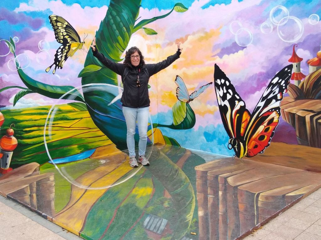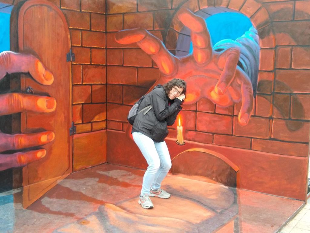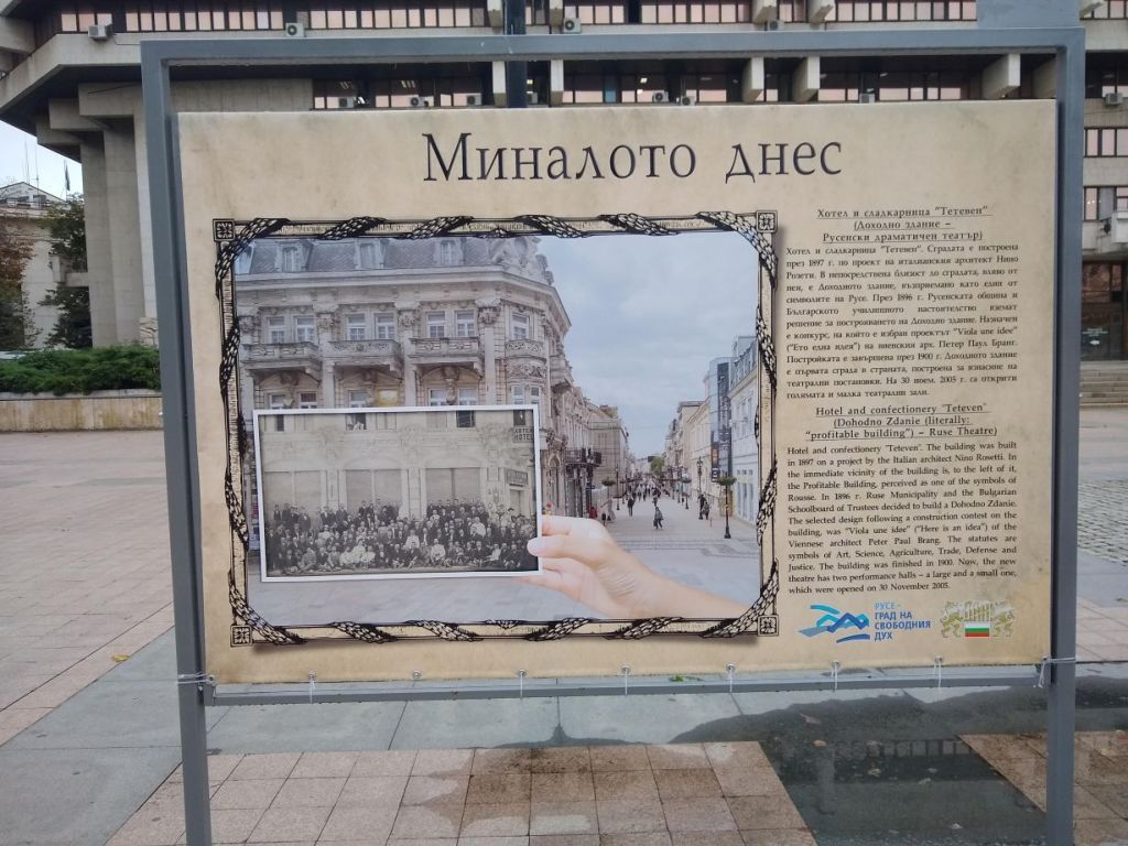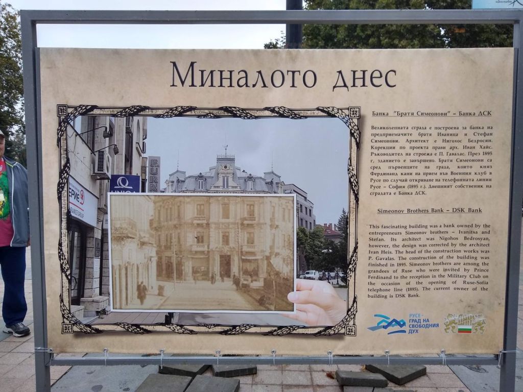 Wandering around the square, our guide explains that originally buildings were required to be grey so that no one would dream, everything would be the same every day. Now there are splashes of color, such as the Opera House painted a vibrant red. Heading back into the center of the square, we pass by the Pyce letter statue, Pyce being the Bulgarian word for Ruse, then explore some odd 3D paintings displayed around the main fountain. We try to capture the 3D spirit, but for some reason we aren’t as successful as we when we last visited the Chiang Mai “tricky-eye” museum. We also have time to look at some great touristic displays around the square that depict an existing building juxtaposed against an old photo from the 1800 or early 1900s. Really fun and fascinating way to explain the historical significance fo the area.