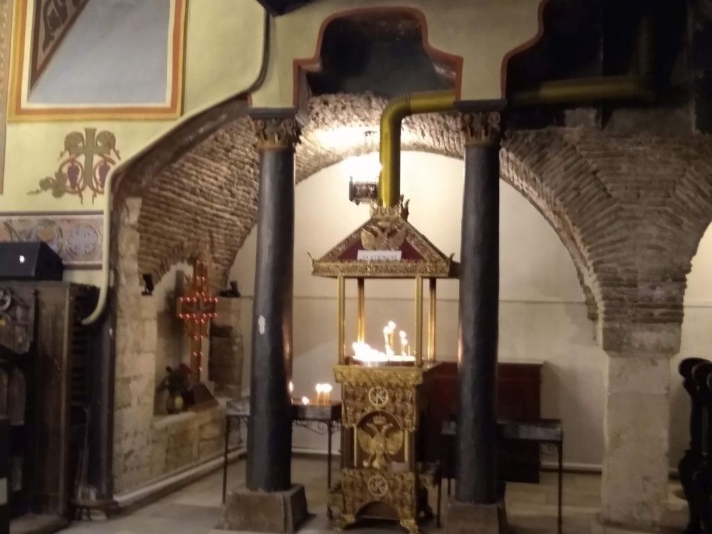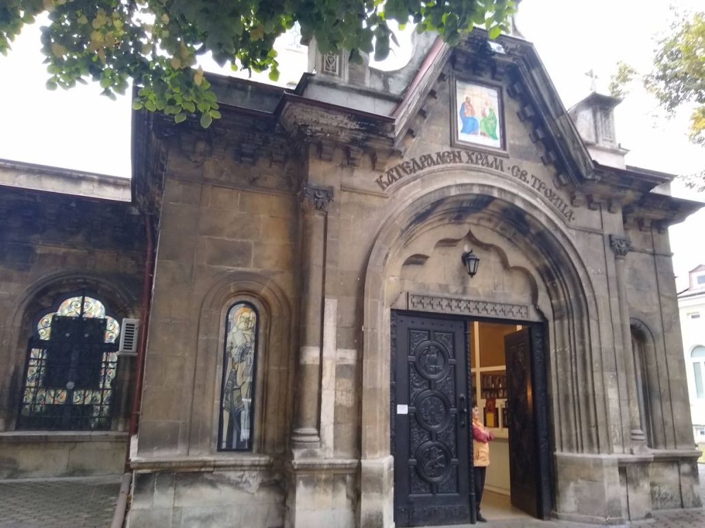 Our next and final stop on our walking tour is the Holy Trinity’s Church (or the Church of Sveta Troitsa). A Bulgarian orthodox church built sometime in the 17th or 18th C (not sure exactly which), but it is the oldest church in the city. An imposing structure made of heavy looking stone and embellished with Baroque (I think) pillars and arches, an interesting feature is that the nave is 13 feet below street level, due to Ottoman empire requirements at the time that churches could not be taller or more magnificent than Mosques.