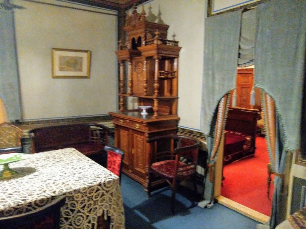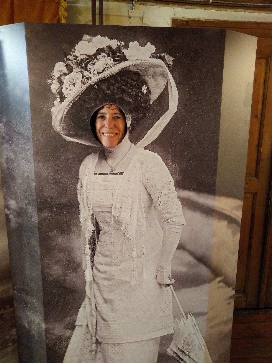 It is a fascinating romp through the lives of the upper class of the 1800’s. Plus the unexpected surprise at the end of the tour, near the exit, where a lighthearted display allows us to try our hand at driving an old sportster and pretending to dress in period costumes. Fun!