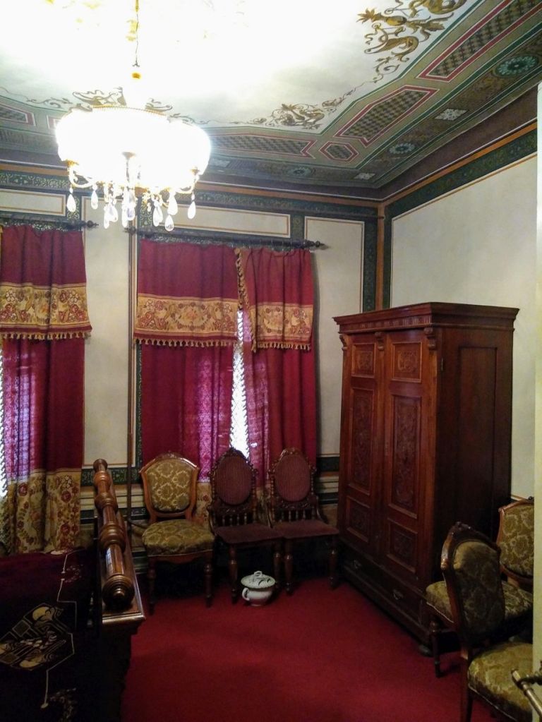 Moving on into the city, we pass some of our fellow passengers wandering about, then arrive, alone at the Kaliopa House to hopefully get a glimpse of upper class living from the late 18th and early 19th Century Bulgaria. The hopeful part is, once again, the place says it is open, but there is literally no one around. We ring the front door bell, and after a few moments, the caretaker appears, takes our entrance fee and shows us into the house. Private museums! Lovely.