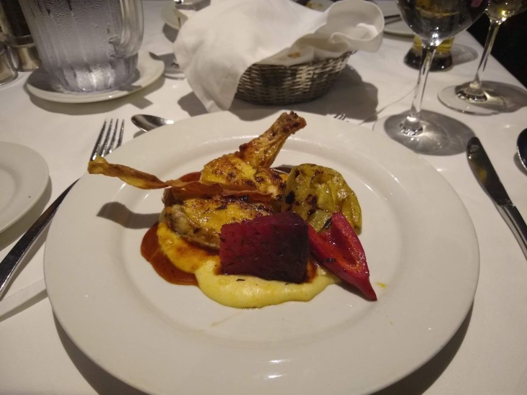 Dinner tonight is an excellent chicken dish with grilled veggies and polenta for me, and a sauteed fish with lime and salsa for Ed. All throughout dinner, we traded stories with Lori and Raul – they about their day in Veliko Turnovo, us about our exploits around town and the private museums!