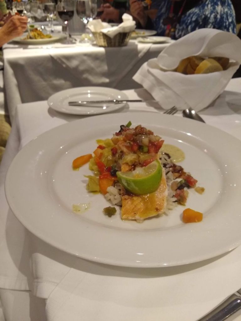 What a sweet day we’ve had exploring Ruse! Now it is time to head back to the boat, hang out until Happy Hour at 6 (25% off drinks!), then our Port Talk at 6:45 and of course dinner afterward, where Lori has the strategy down! Ed and I have already positioned our table as close to the door as possible, so while we and Raul listen to the end of the talk, Lori slips out to be first in line for dinner so we can snag our favorite table and waiter! We’re on the program!