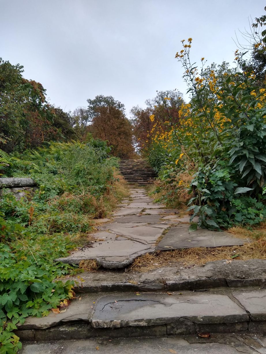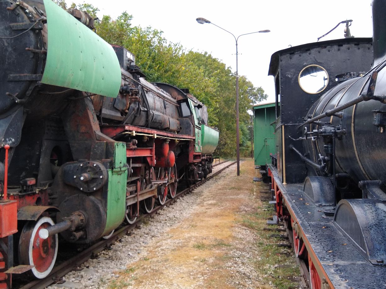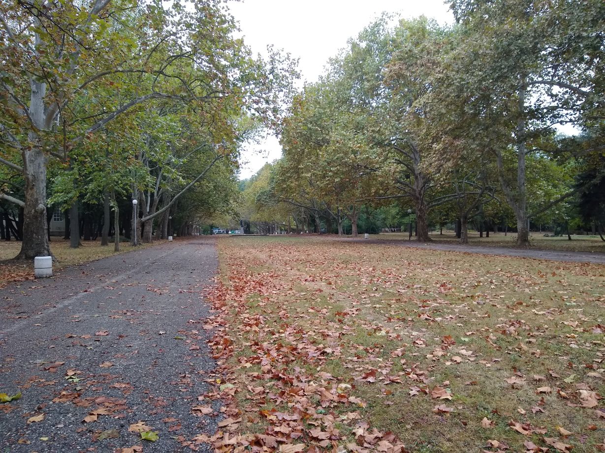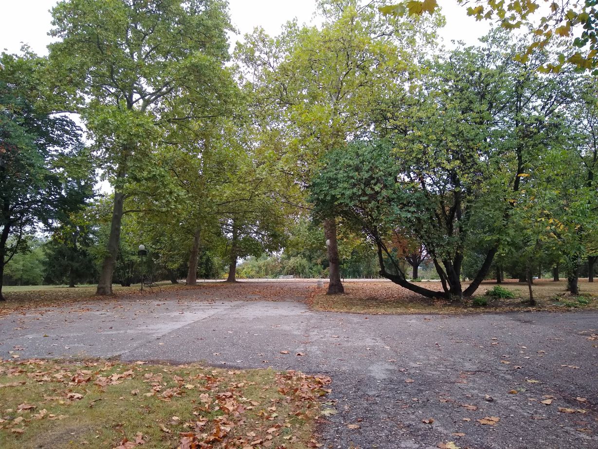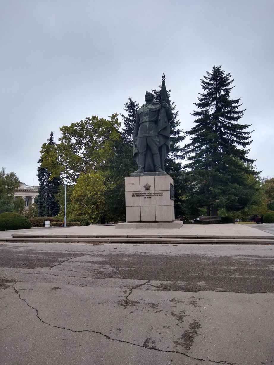 After our quick lunch, we are back out on the streets of Ruse in a jiffy, heading in the opposite direction of the main town, out past the Monument to the Russian Soldier and into the beautiful, and virtually deserted Mladezhki Park on our way to the National Transport Museum. The walk is wonderful, although a little confusing as we are traversing the park with no directional signs whatsoever. We’re relying heavily on our Google Fi phone service and Google maps, which fortunately work extremely well here (otherwise, we’d be lost for days in this huge place). Nonetheless, it is a great place to walk with interconnected trails everywhere, topiary statues/carvings and a fabulous fall feeling with ochre colored leaves strewn all about the paths.