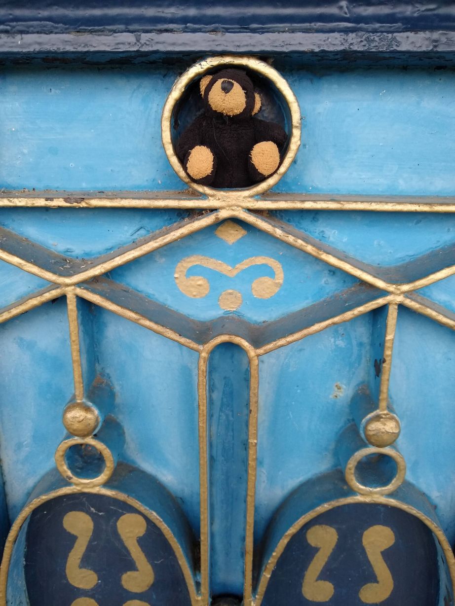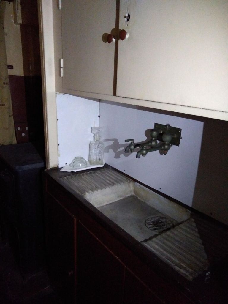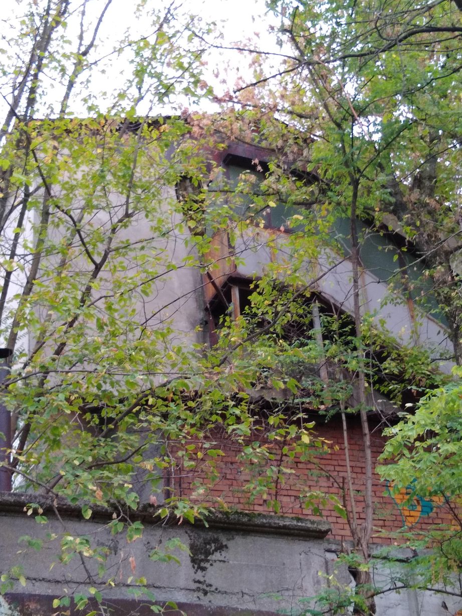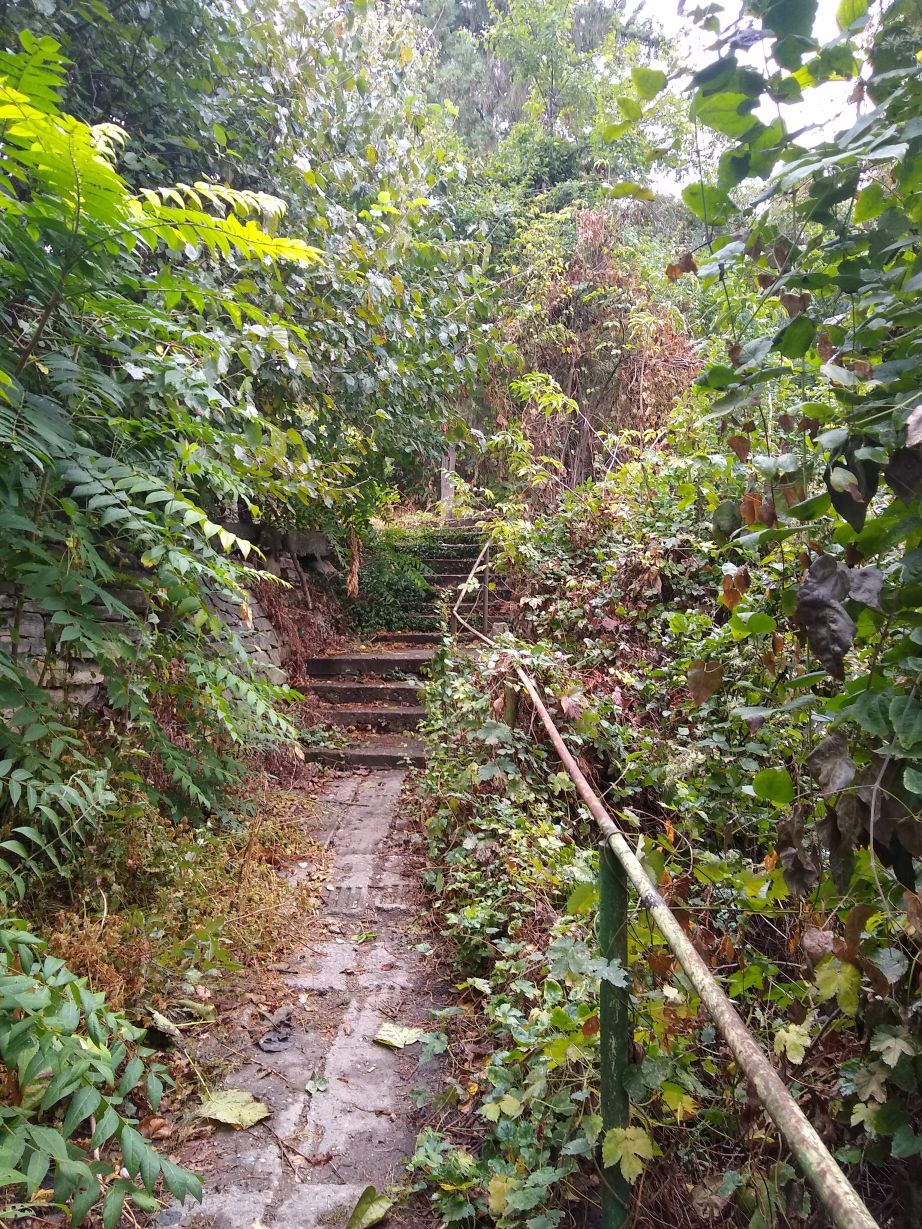 We walk for about 15 minutes, winding our way through the park, then take a wrong turn (or actually don’t turn) and find ourselves in this dead-end compound of ramshackle stone houses and ominous looking abandoned cars. Oops! Turning around we find our pathway, an overgrown set of stone steps leading down to another little road that leas to the road fronting the river where the museum is located. The road doesn’t look much better, to be honest, but in for a penny, in for a pound, and right up ahead (after the set of dilapidated buildings on our left) rises the Train station tower with an old train engine right out front. Phew! Found it. Now, just the challenge of getting in remains!