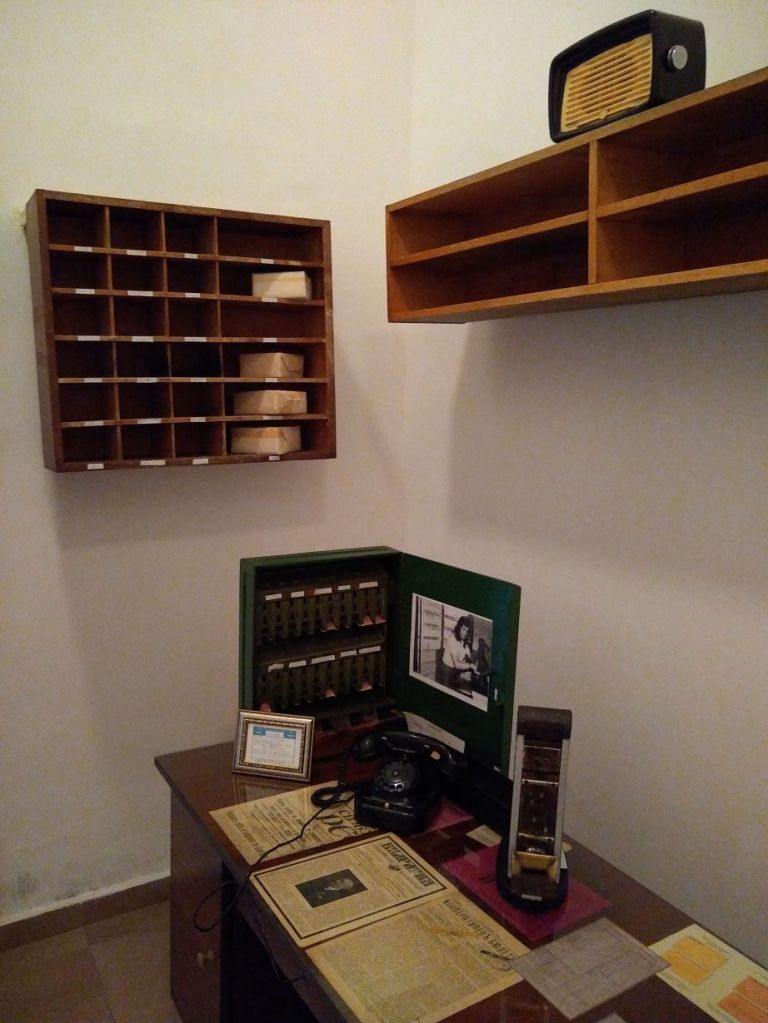 Fortunately we’ve done our research (who’s surprised?). The museum is run by a married couple who live on the second floor of the building. Even though the place is locked up top and doesn’t look open, if you arrive during “opening hours” you simply ring the bell at the next door over from the museum entrance (their apartment entrance) and the caretaker will come downstairs, take your entrance fee, walk you over to the museum entrance and unlock the doors for you. Which is exactly what we do – and – voila! She comes to the door, escorts us over and – we have the whole darn museum to ourselves! Totally cool!