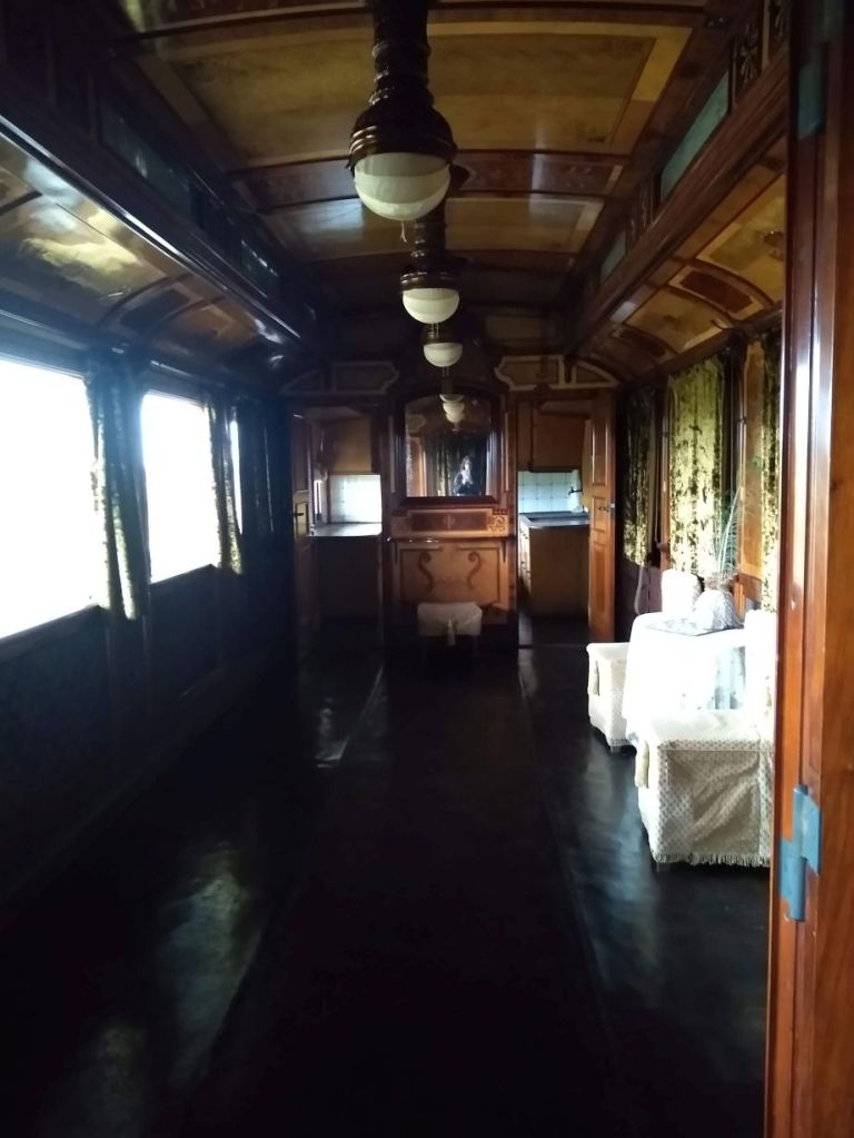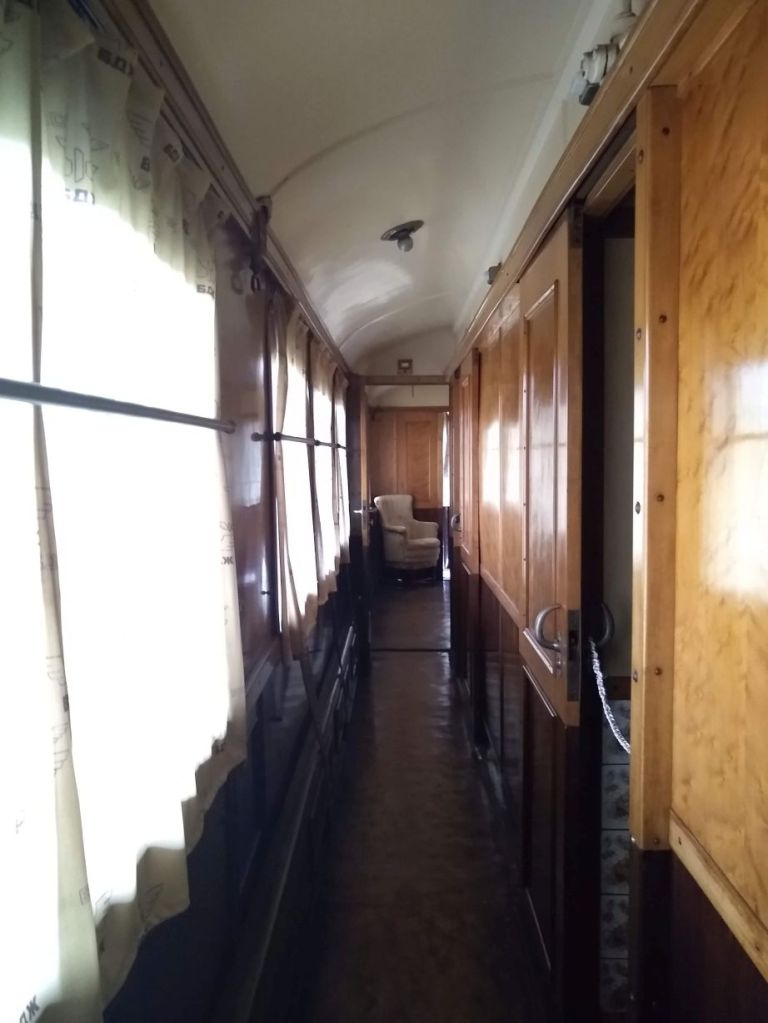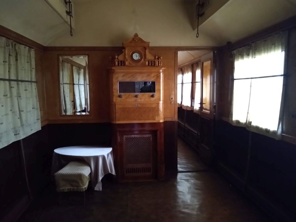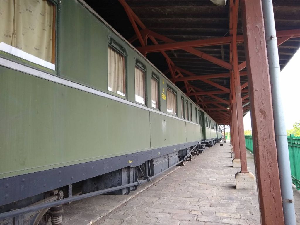 So, seriously, the caretaker is waiting for us at the front door, chatting away on her phone all the while. Through a series of hand signals and pantomime (absolutely no English here!), we understand we are to wait while she locks up the museum then follow her down the side of the building to the train cars located on the side and in back of the building.