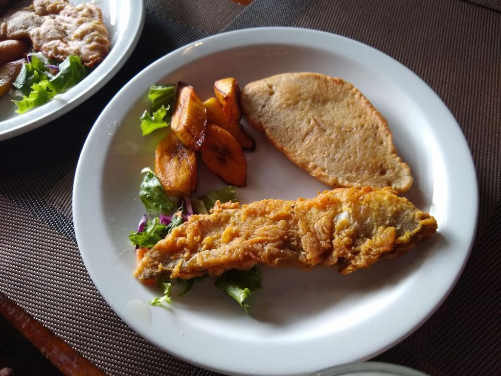 Thirst quenched, we make our way toward the waterfront, passing the Parliament building, then Heroes square, finally crossing the Chamberlain Bridge, originally built as a swing bridge, but now reconfigured into a lift bridge to provide access to the yacht basin at the end of the Constitution river. We settle in at the Bridge House, on the 2nd floor overlooking Independence Square and the yacht basin with wide open windows channeling in whatever little breeze there may be. Here we switch to Deputy Beer (the more popular local choice – still brewed by Banks beer – but called Deputy for some reason I’ll be darned if I can remember, think it has something to do with Banks is the Sheriff in town, but Deputy is 2nd??? Something like that, maybe…..) while we wait for our fried flying fish and bakes. Yes, bakes! I’ve been waiting to try these all day – they are like little, dense sweet and savory pancakes. And, boy are they worth the wait! Sweet but a little salty, thick like a johnny cake, but a completely different flavor. I’m so stuffed already, I hate they come at the end of this overstuffed food day, but I manage to make mine disappear by the time we are ready to leave. Oh, and the flying fish? Yeah, that was delicious too, but, I’m focused on that bake!