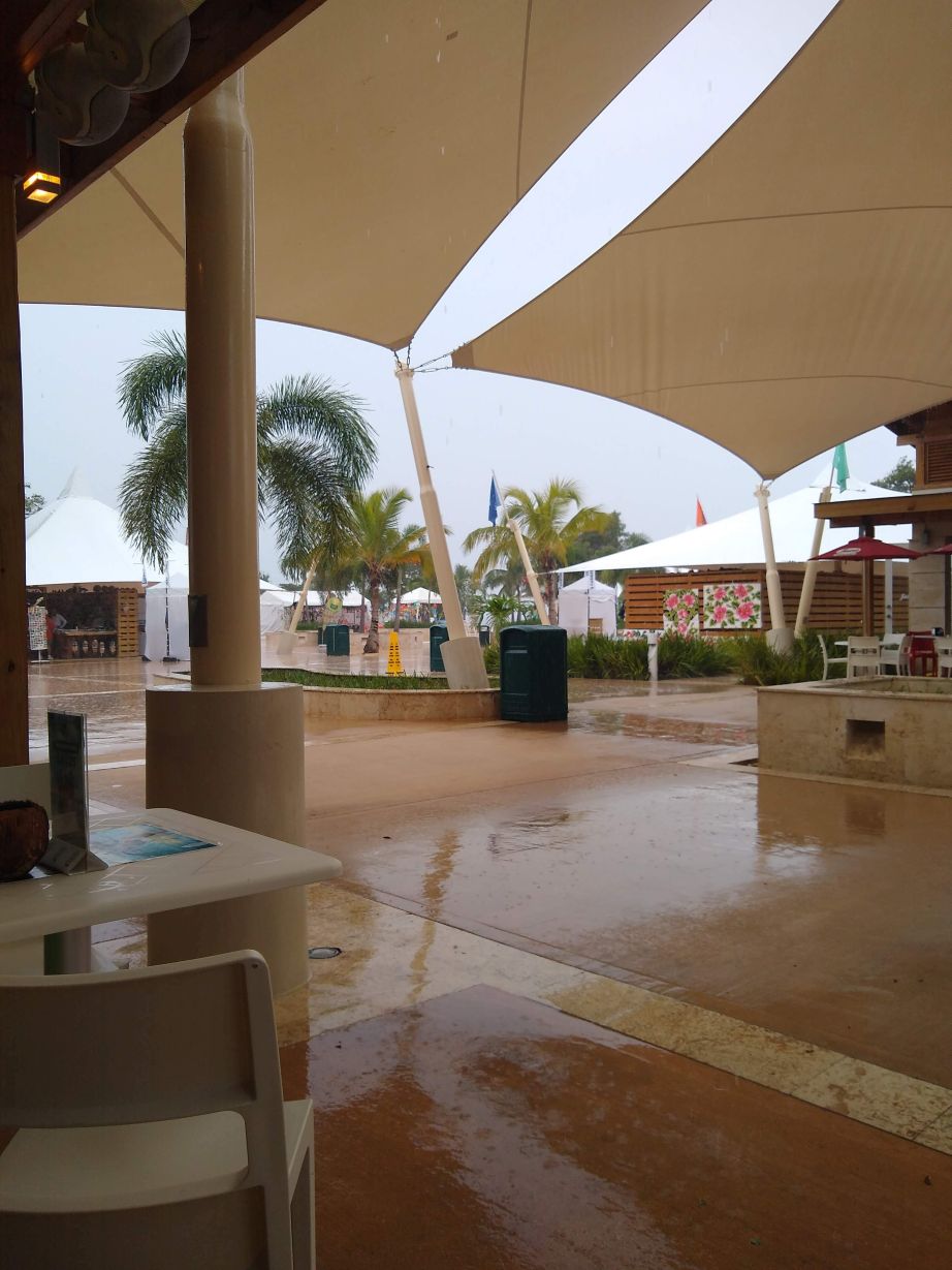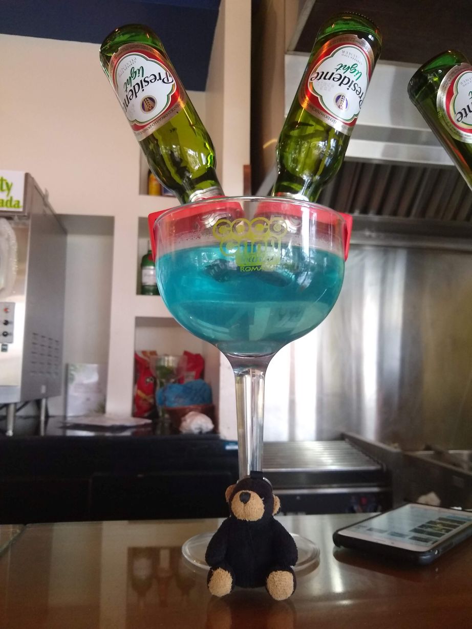 Breakfast done, we finally venture out around 11 and peruse all the shops in the port area. There are the obligatory Duty Free stores, but also lots of local crafts we’ll hit on the way back. We peruse a great little store with tons of coffee we’ll pick up later, then head to the one bar in the port where we sit under cover, drinking beer and watching it pour down rain. Good decision to hang out and take it easy today!