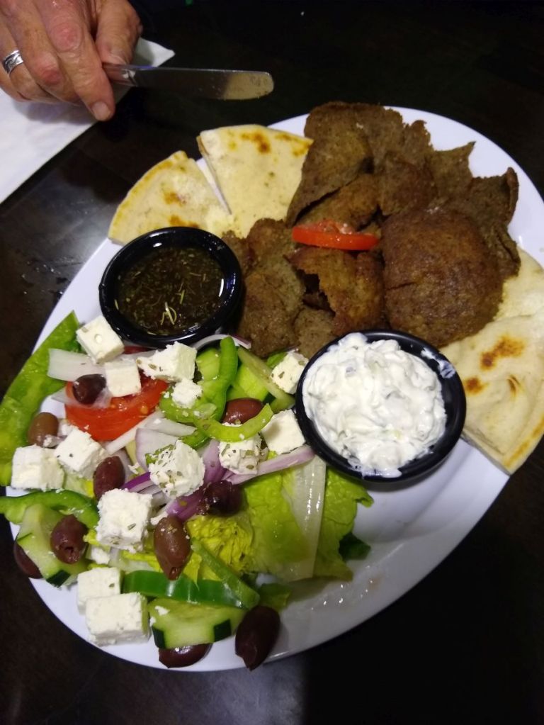 We decide on an early dinner at Zorba’s, with huge portions of Gyros – both platter and sandwich. Topped off with a nice glass of wine and a HUMONGOUS beer – we’re happy and quite full on the short walk back. We finish the evening with more Law and Order, managing to stay awake until after 10 which is pretty good for our jet lag!
