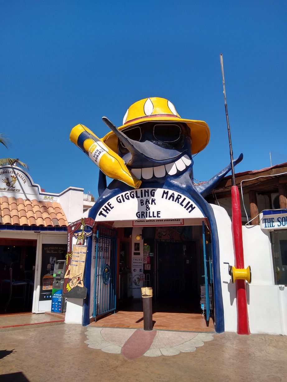 Oh well. At least we wasted enough time that we can think about lunch now. We traipsed through town, perusing some little places, and passing Taco Loco – where I’d read had the best tacos. But, we decided to keep heading toward the Giggling Marlin, a place we’d been years ago with my folks. We figured it was enough off the beaten path as not to be so crowded and it wasn’t Cabo Wabo, which was all we cared about.