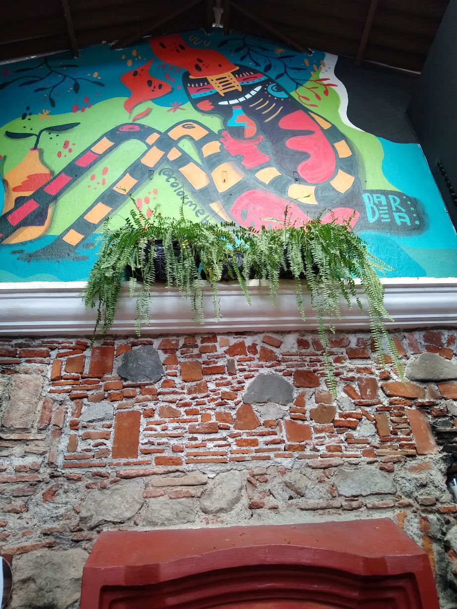 It is a great little place to hang out really. And actually, it isn’t that little. We are sitting the atmospheric open air bar with cool graffiti murals and exposed brick, but there is also, obviously a 2nd floor or rooftop garden area of some sort, because servers keep going up and down this spiral staircase at the end of the room and off the side is another whole huge indoor room. Who knew? Doesn’t matter, we’re very happy sitting here in our little corner, basking in the sunshine, listening to the brewer talk about their beer, showing off the tanks and system right there against the wall and sipping on, are you ready for this? Coffee stout! They knew I was coming!