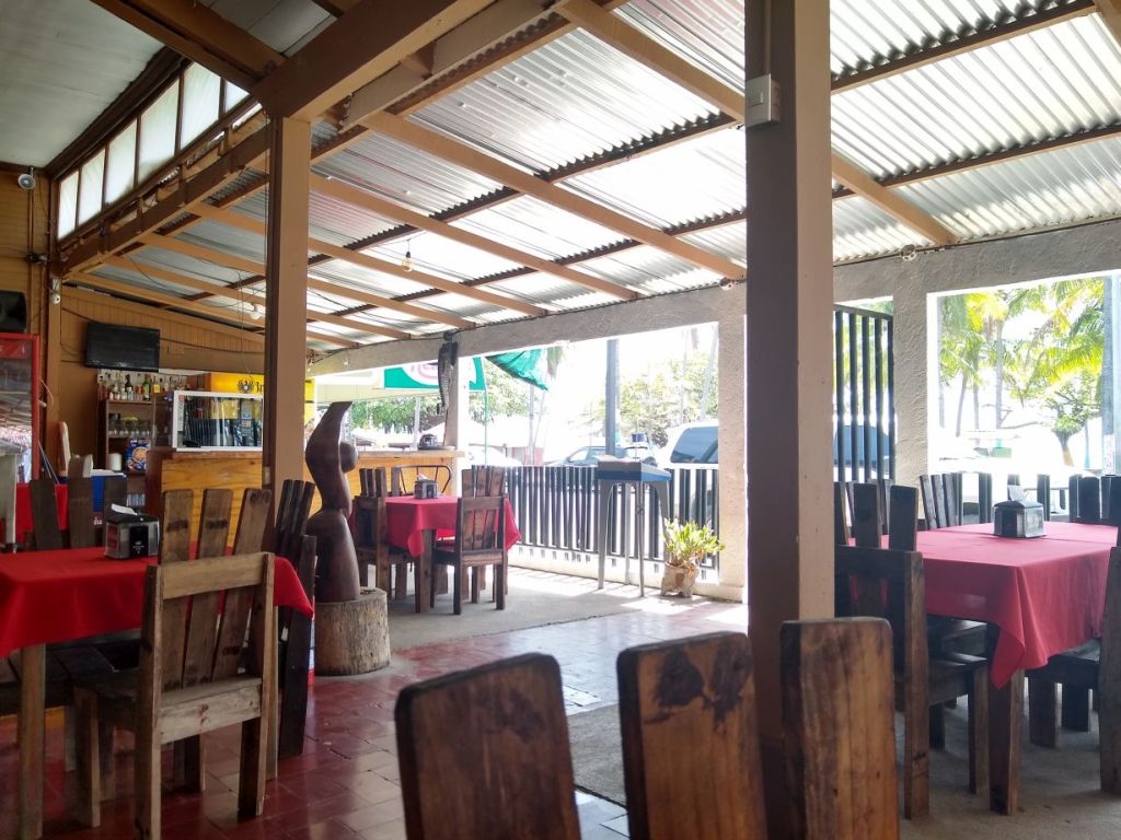 We’re now onto Avenue 1 heading away from the central downtown area in search of our lunch spot. There was a restaurant allegedly right on the corner of the park and Avenue 1 I wanted to check out, but we never found it. So we marched on through the residential area of El Carmen, though once again, deserted streets but this time lined with homes and some tiny shops. As we are nearing Kaite Blanco, we run into an apparent ex-pat who talks to us in this English-Spanish patois which is really fun to try to translate. He is an old hippie-looking dude, obviously a fisherman, and is telling us about a big catch a boat has made, and we can go see it right at the pier – which is at the end of the street where the restaurant is located. Ok, well, thanks, maybe we will, but as we turn the corner and get closer to the pier, we see it is a commercial fishing pier with tons of fencing and people around and we’re not quite sure how cool it would be to just walk in. So we turn our attention to Kaite Blanco, which is literally at the entrance to the pier. And it looks totally abandoned! Bummer! Everything I read said they were open at 11am, and open on Monday. After casing the joint, in all honesty, even if it were open, we probably wouldn’t eat there. We have no problem eating on the street, but this was a little, how shall I say it, more basic than we would prefer.