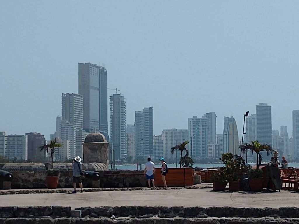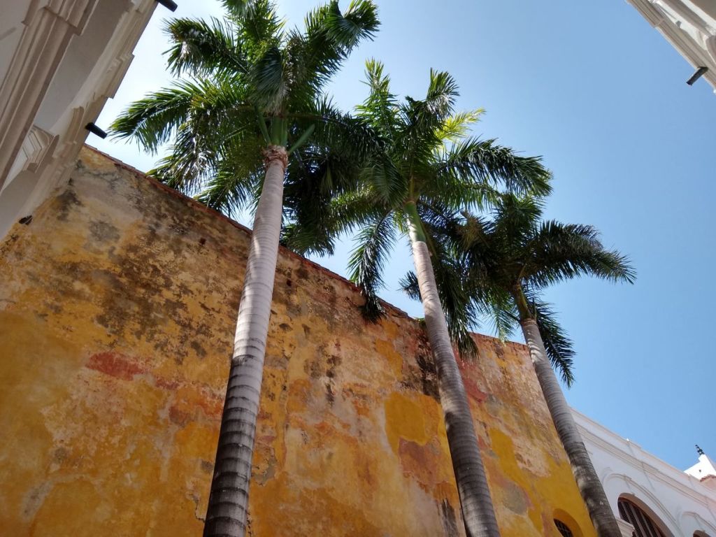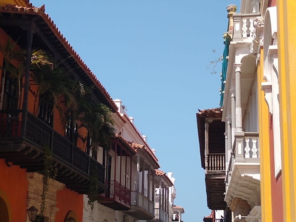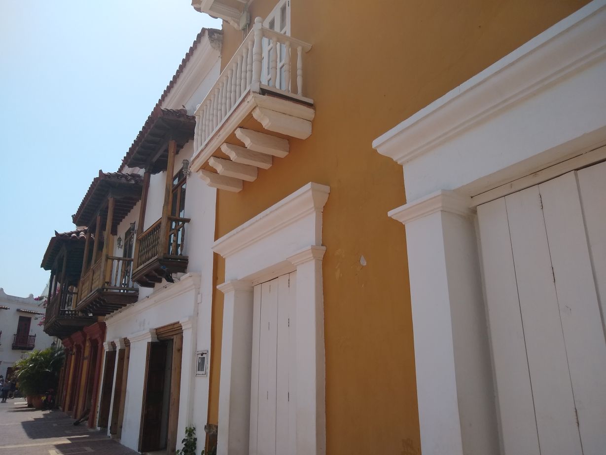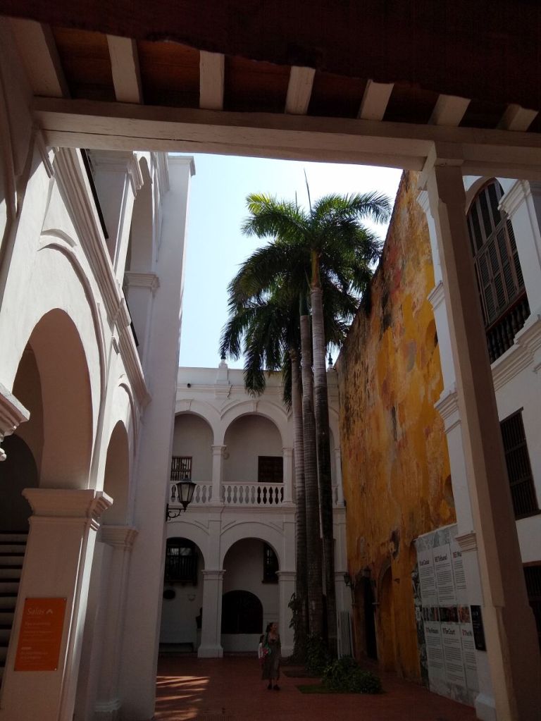 From the gate, we begin our meandering, heading first to the Plaza de la Aduana, a large pie-shaped plaza that is lined with various colonial architectural styles. All colorful, all pretty bright colors, gleaming in the hot almost-noon day sun. There are lovely wooden balconies, lots of flowering plants, some really great ironwork sculptures and a beautiful stone church from the 1500’s, the Iglesia de San Pedro Claver.