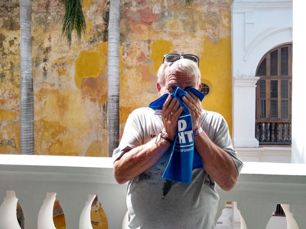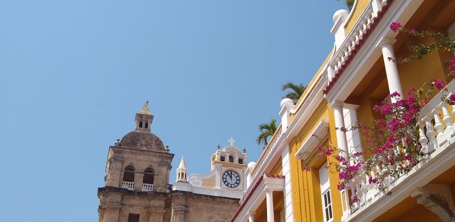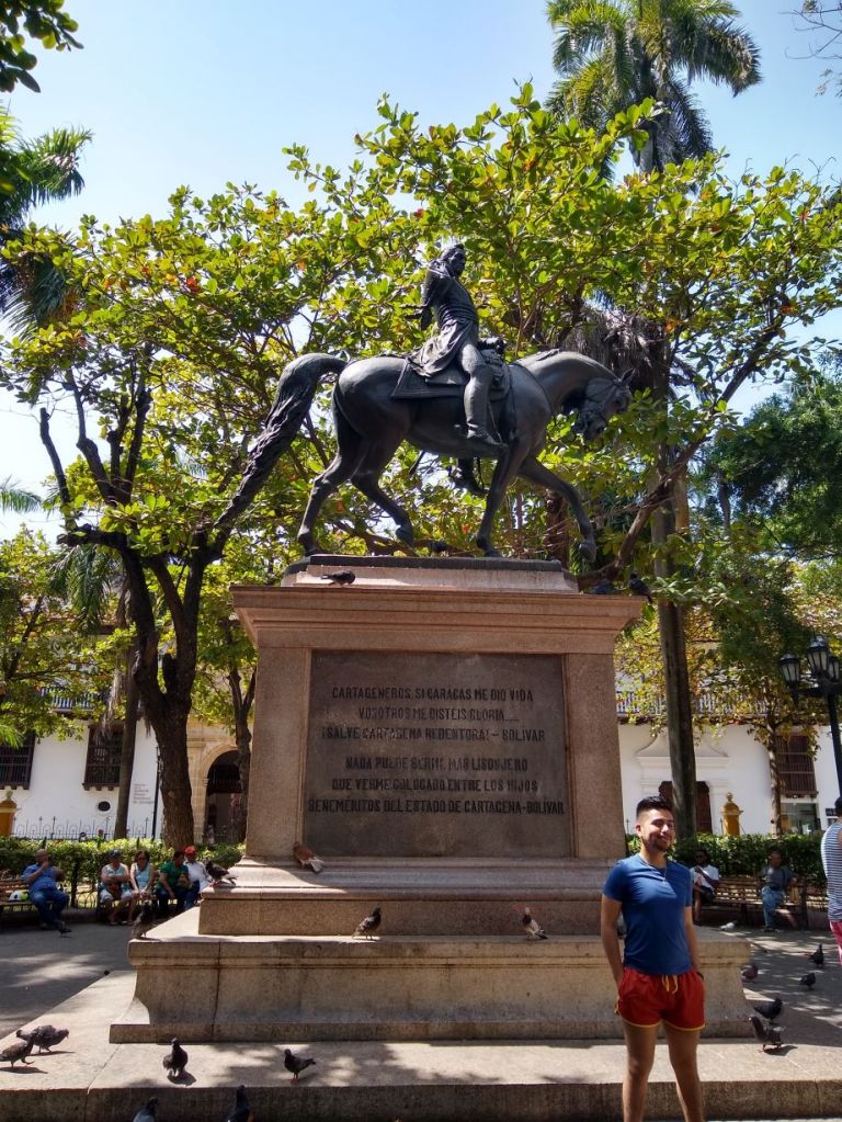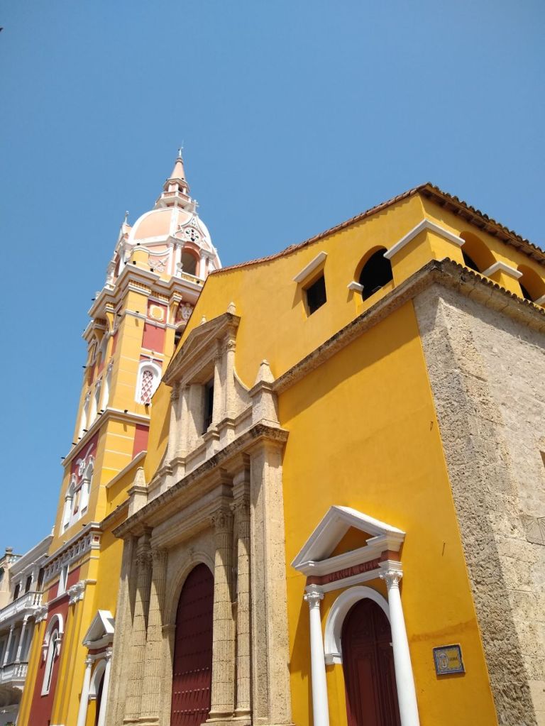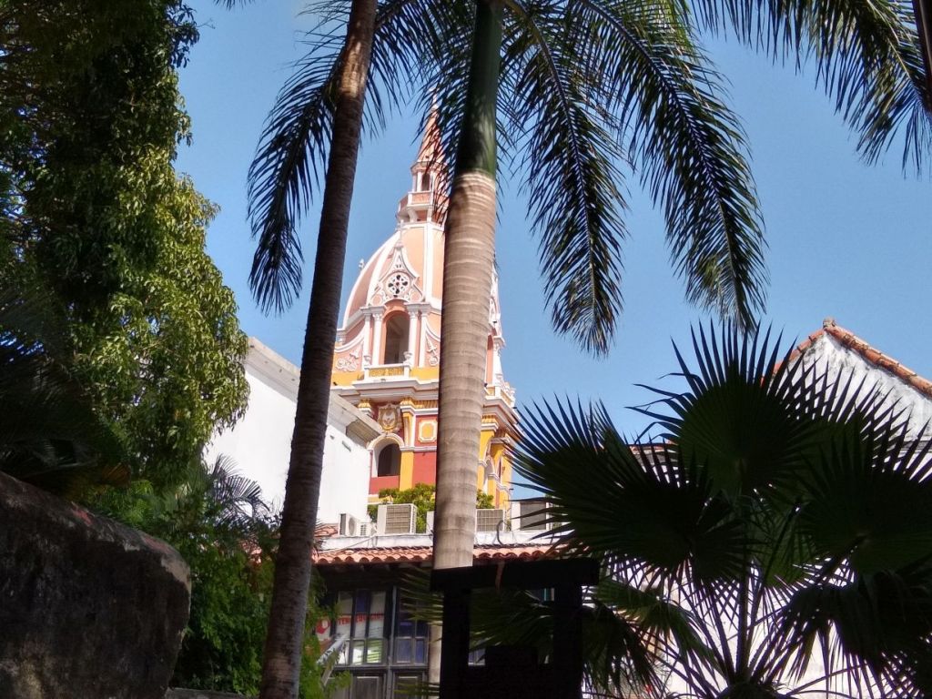 Back out onto the blistering streets we go, hugging buildings to keep in the shade as we walk through the center of Old Town. There are street vendors selling all sorts of souvenirs, but none are overly aggressive as they were the first time we were here (oh so many years ago). Guess that’s what a booming tourist economy will do for tourist dependent vendors. Makes for a much calmer visit, and we are certainly not complaining. Makes it much easier to wander the streets stopping here and there to take pictures of the gorgeous buildings with their vibrant colors and pretty iron and wooden balconies. We make it to Bolivar Plaza, take a picture of his statue, then continue on to the Catedral de Santa Catalina de Alejandria, which isn’t open to visitors currently but is still very picturesque from the outside.