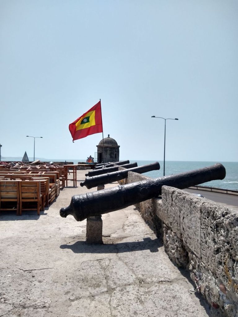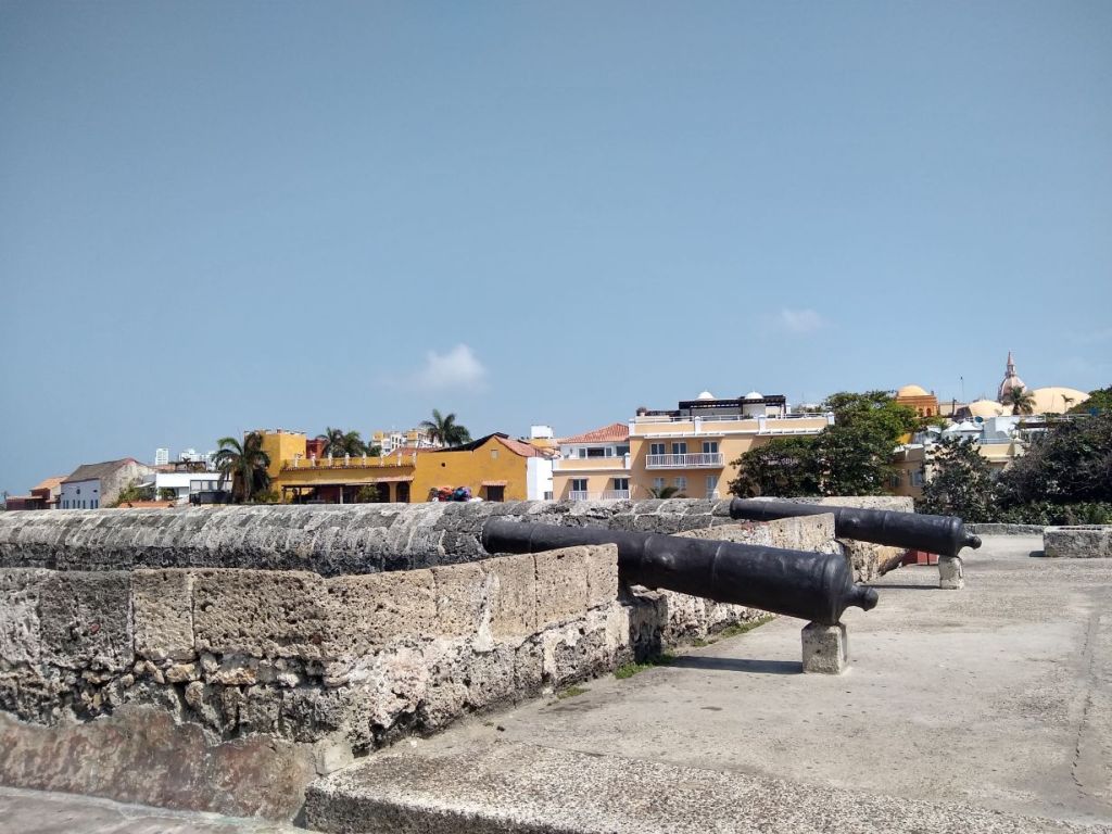 Through the pretty narrow streets we continue, on out to the end of the old town and the Baluarte de Santo Domingo. Here one of the main defensive bastians for the old city has been turned into a little recreation area with a couple of cafes, but also gives us access to the city walls upon which you can walk all the way around. We’re not embarking on that adventure, but it is lovely to stand up here and take in the wide angle view of the new city across the bay, juxtaposed with the old cannons left in situ.