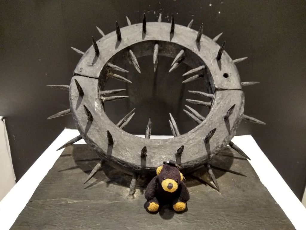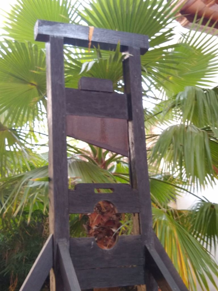 The inquisition exhibit was extremely well done, with explanations in both Spanish and English so we could follow along. Not that we needed much explanation – it was the Inquisition! Just like the Spanish Inquisition, they persecuted anyone who didn’t agree with their religious beliefs. Over 200 years they punished 900 people, 5 of whom where burned at the stake. Beyond facts and figures and maps, there is also a display of torture devices and then outside in a small courtyard, a guillotine and a noose. Yeah, brutal. But Sunny seems to enjoy examining these things – what can we say?