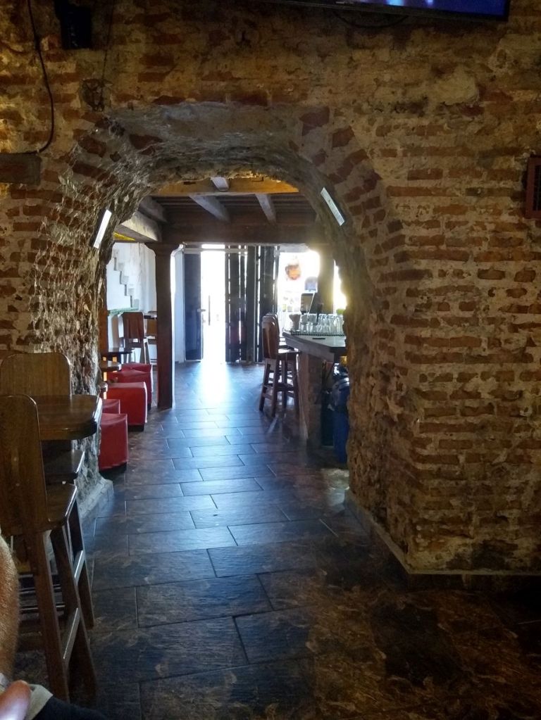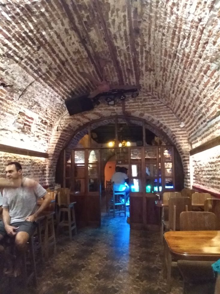 Back out into the picturesque streets, we wind our way toward the pier, with enough time left to stop off for a refreshing beverage. What else? We stop at this great little place called Humarea Bar and Grill. There is a bar in the front room where we are about to sit, but the waitress shows us to the back room, which is a totally cool arched brick room with 4-top tables, that opens up into another arched brick room further in the back with glass partitions and yet another bar. We’re thinking this is a late night sort of place, because they are playing music videos on the TVs (oh and probably a sports place too, with the multiple TVs). But, for right now, it is fairly empty with just a few folks at the back bar and another couple that come in after we’ve settled in with our beers. Nice little interlude before heading back to the sightseeing boat for our ride back to the ship.