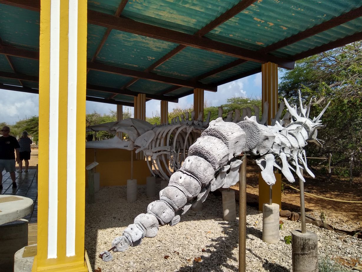 Finally at the park, we have a 20 minute bathroom break where we can also wander through a neat little museum that has a flamingo skeleton (which is amazing to see how little skeletal frame the bird actually has – no wonder it can fly forever without a problem) and lots of historical photos and explanations about the island. There is also the skeleton of the giant Baleen whale that a Holland America ship skewered on its bulbous nose a few years back. They extricated the whale here and then just let it decay, but then the school children got involved, started a project to save the skeleton and managed to raise funds to put it together as a display here at the park entrance.