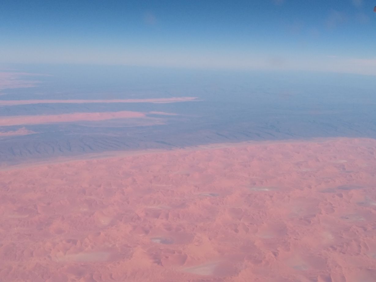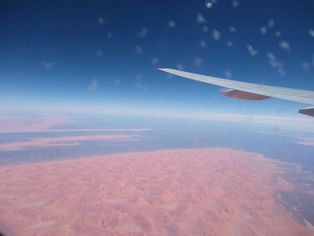 The Cape Town flight is packed solid (just like the Vienna flight) and it is a total scrum to get onboard, but we are positioned in the right place to be first of the coach class to board, get our seats and overhead space perfectly and settle in for our 11 hours of air time. Surprisingly, the 11 hours goes by quite reasonably (I can’t say quickly, but it wasn’t as torturous as we had feared). We watched movies (After the Wedding and something else I can’t remember), read, I napped, ate well, got some fabulous photos off the coast of Europe and of the Sahara desert and made it through without complaints.