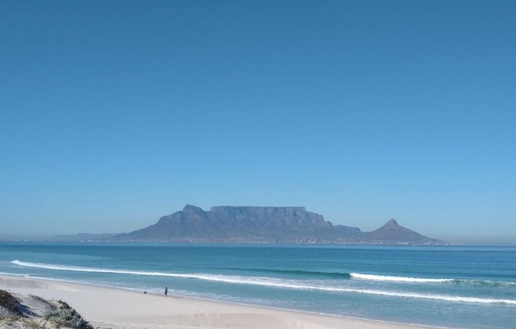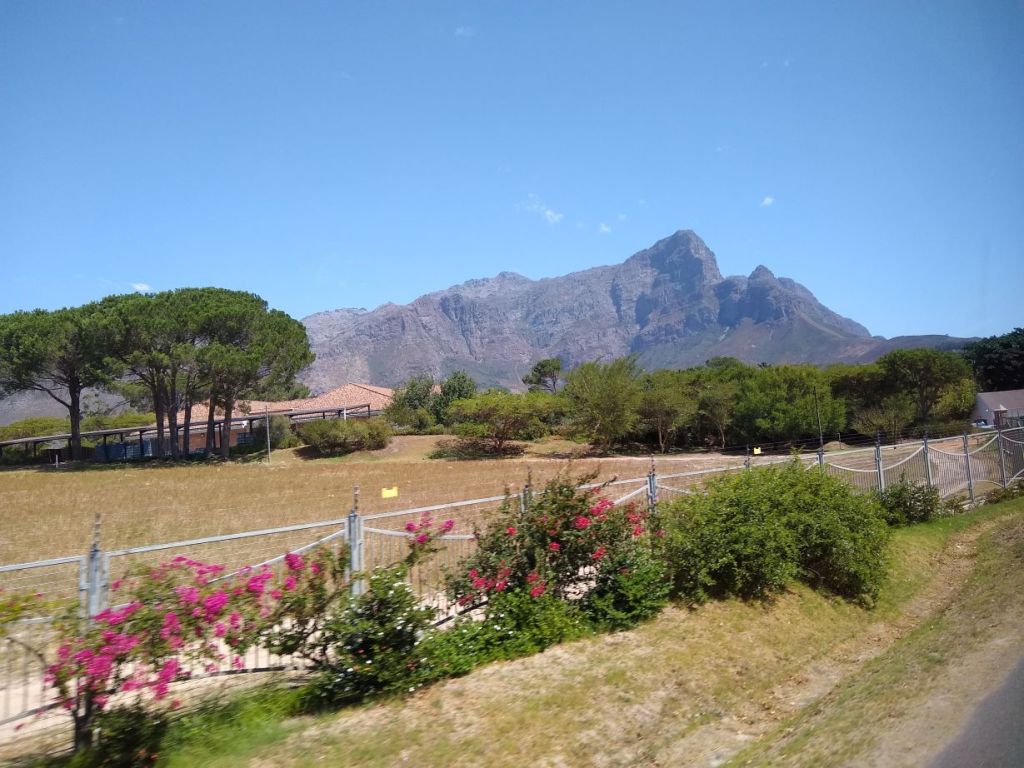 The bus arrives and we all pile on and our guides give us the run down – essentially its exactly what was in the description, although there is a stop at some beach for a picture of Table Mountain across the bay (when one of the passengers asks the guide why we stop there he says it’s basically to waste time so we get to the winery at the appointed time – gotta love honesty!). It is a beautiful day, and the view to Table Mountain is fantastic so while Ed stays on the bus, I hop off to get a couple of shots with the mountain in the background, then hop back on for our journey to Stellenbosch.
