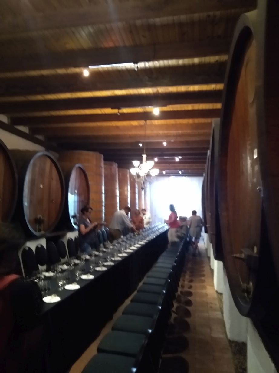 As it turns out, the tour goes off so smoothly, you’d never know you were with 51 other people! Everyone is nice and polite, they don’t jostle or hassle. When Rico (our guide) tells us to be somewhere, everyone shows up. It seriously couldn’t be smoother. We visit Backsberg, have a quick tour of their cellars and operations, then sit at a huge long table for the wine tasting, which is quite nice along with the chocolates. The wine is good enough to buy a bottle to take aboard Quest, so that will tell you something!