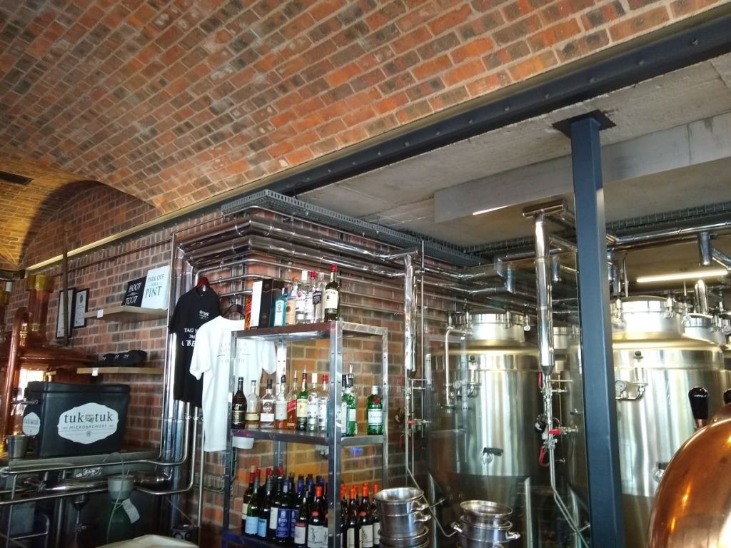 Which is what we do! It’s a lovely little restaurant which features predominately beef (no, you don’t say? With a name like Bovine? LOL) and has a great little app menu where we order fried calamari and BBQ beef spring rolls to go along with an excellent selection of beer and only white wines (special for me which was very sweet of them to do). We still have tons of time after lunch, which is perfect because we need to hit the ATM (which we do at a guarded bank, which makes me happy), then head to Tuk Tuk brewery which we had read about for another beer and wine before our bus boarding time.