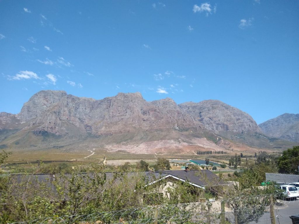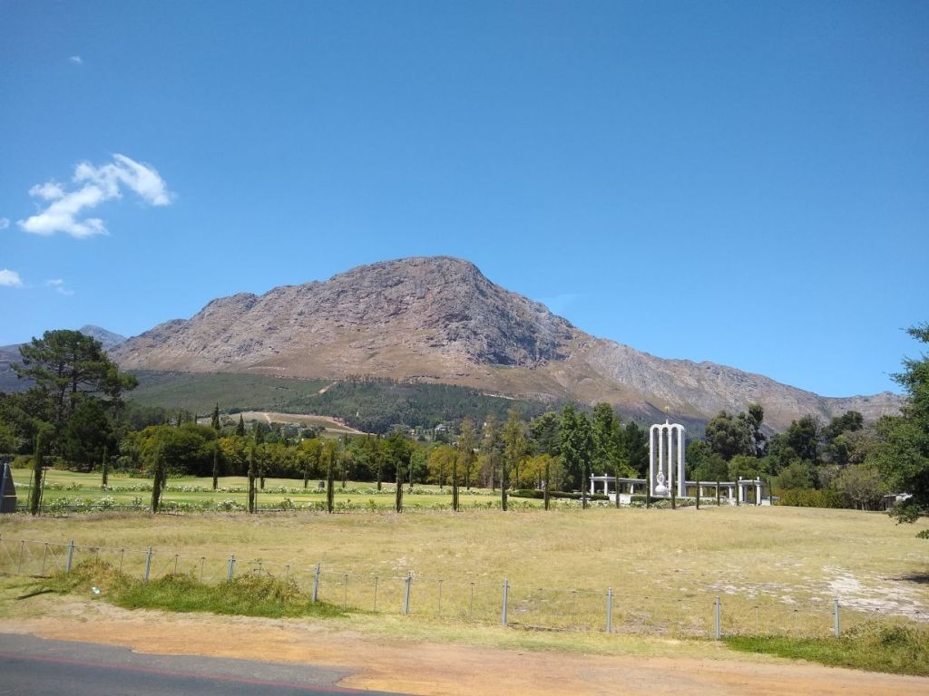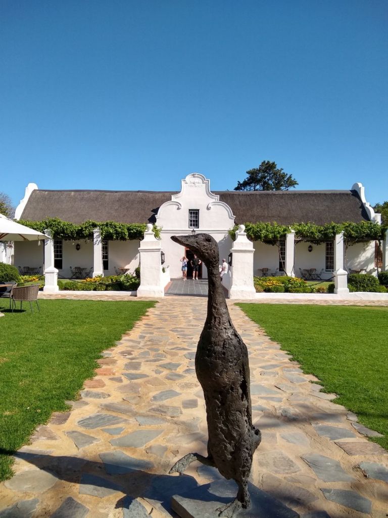 Our last day in Cape Town and we have filled it with an all day wine country tour to two of the most renowned towns in the region: Stellenbosch and Franschhoek. We’re on a grey line tour, which meets at the waterfront in front of the aquarium, which is where the HoHo buses are located. The tour includes a stop at a winery in Stellenbosch, a complimentary glass of champagne, a chocolate pairing, lunch on your own then a cheese pairing at a winery in Franschhoek which sounds perfect to us. We walk over to the meeting point and realize that it is actually HoHo bus people who are running this tour and we will be on a double decker bus (duh! We never connected the grey line tour with HoHo, which was our bad). When we check in though, the girl who takes our tickets says to stand in the line (that is already forming) for the wine tram tour and the bus will take us to the tram where we can take the yellow or the blue line. Huh? That’s not what we signed up for, so we’re a little concerned here.