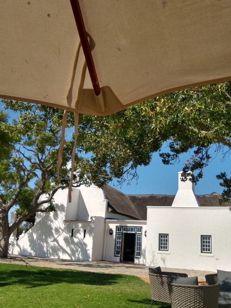 Everyone is back on the bus at the appointed time, and we head off to Franschhoek, the little town that is supposed to be the culinary and wine capital of the region. Here we’ll have 2 hours of free time for lunch and shopping. We’ve done some research on the restaurants and have a couple picked out, but Rico tells us that with our tickets, we get a free wine or beer tasting at Bovine, a local restaurant. If we want to partake, we can follow him there. No obligation to purchase a meal, but we do get the tasting free. Well, how can we say no to that? And we might as well just stay there to eat too!