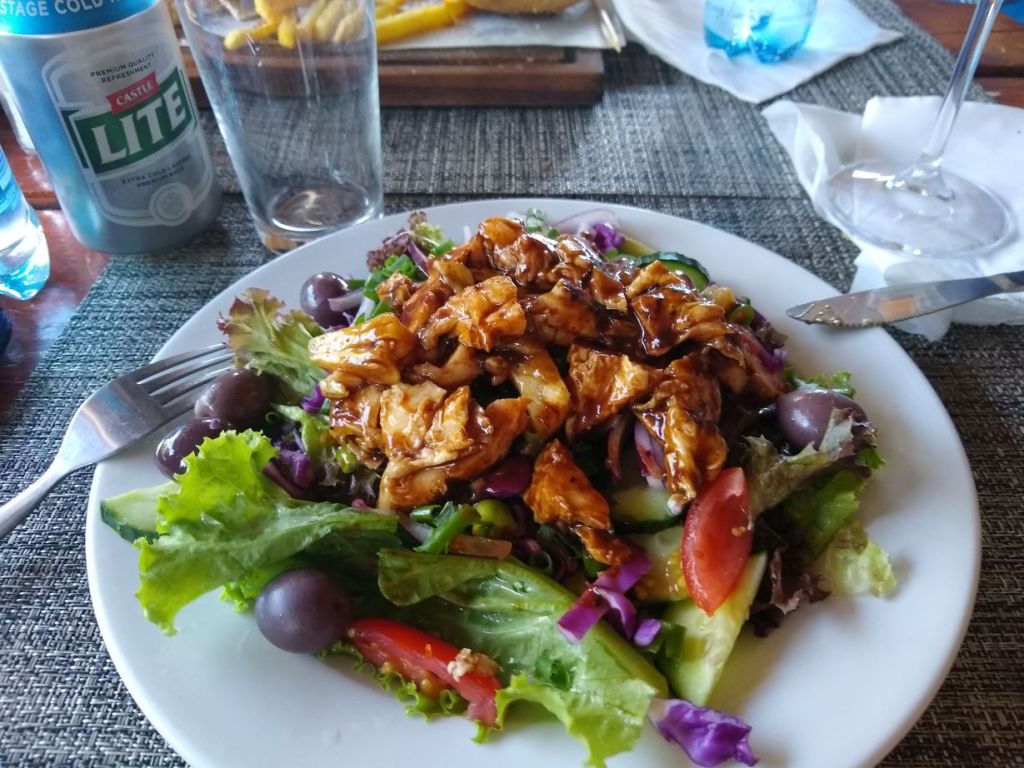 Back on the ship, we dump our backpacks, wash our faces quickly and go upstairs to the African BBQ on deck. We’re excited to see what they have prepared, and we are not disappointed. It’s like a pseudo White Night – all the officers serving, special dishes like Droewors sausage and Ostrich (which is yummy btw), and Kingclip and hake (fish local to the area) plus Bunny Chow!!!! Finally we get to try Bunny Chow! We’ve wanted it every since Maritza told us about it on the Pursuit. Traditionally found in Durban, it is essentially curry inside a hollowed out loaf of bread. Here on The Quest they have made it with beef curry and a smaller maybe 1/3rd loaf size bread. It is so good yummy, and I’m totally excited to finally try it! There are a million other offerings, pasta, sushi, salads, veggies, desserts – you name it. These outdoor buffets are some of our favorite things on Azamara.