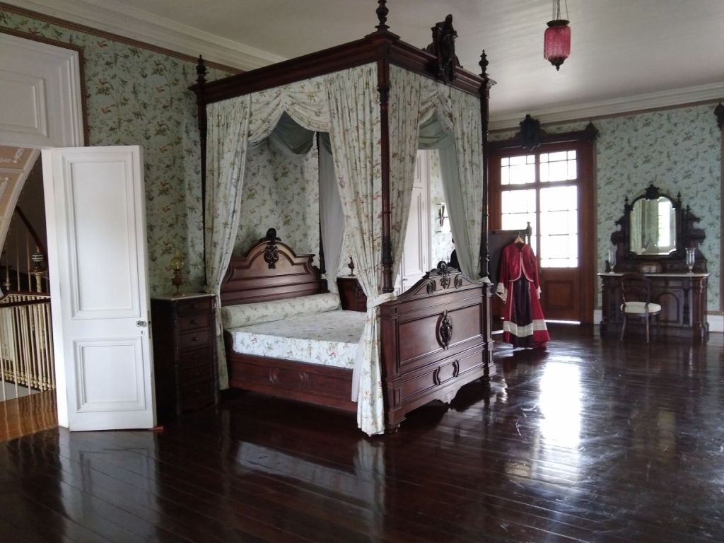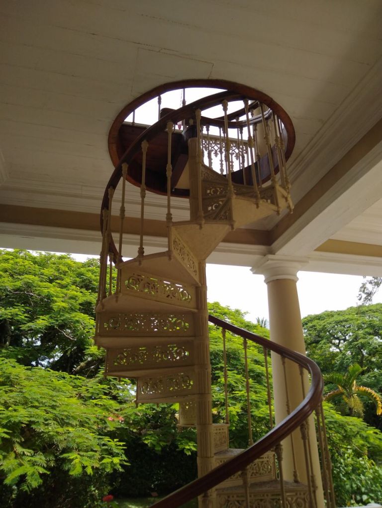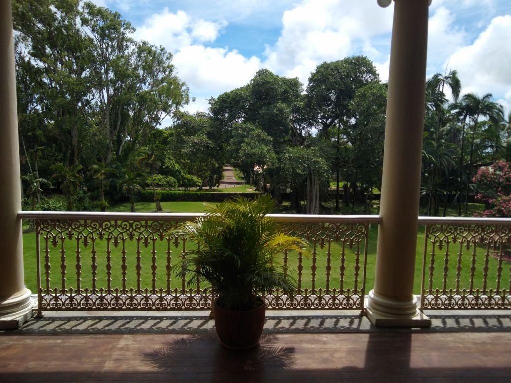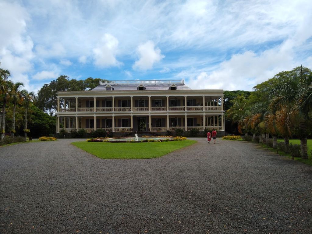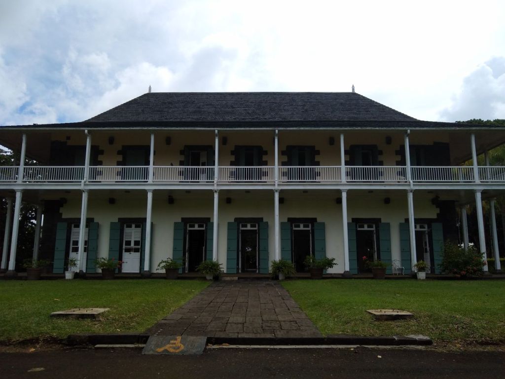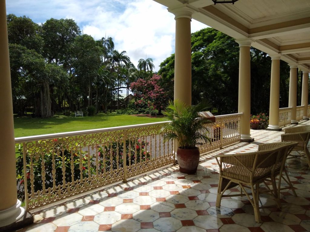 After the video, we wander through a little museum that showcases the building and the renovations, then circle the upstairs balcony with wonderful sight lines above the entrance lane and the gardens. You can imagine living here in the 1800s as the owners of the plantation – very Tara-ish, in a Mauritian way!