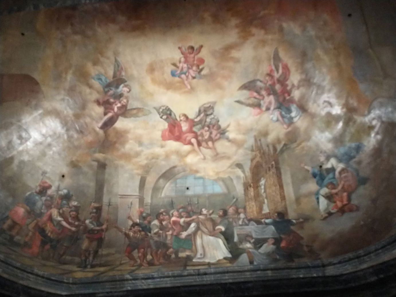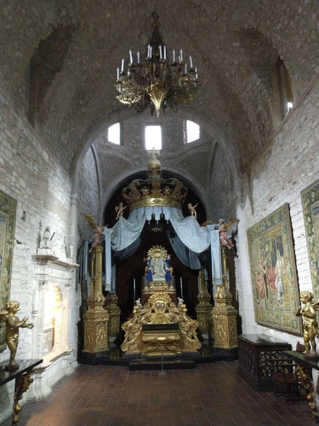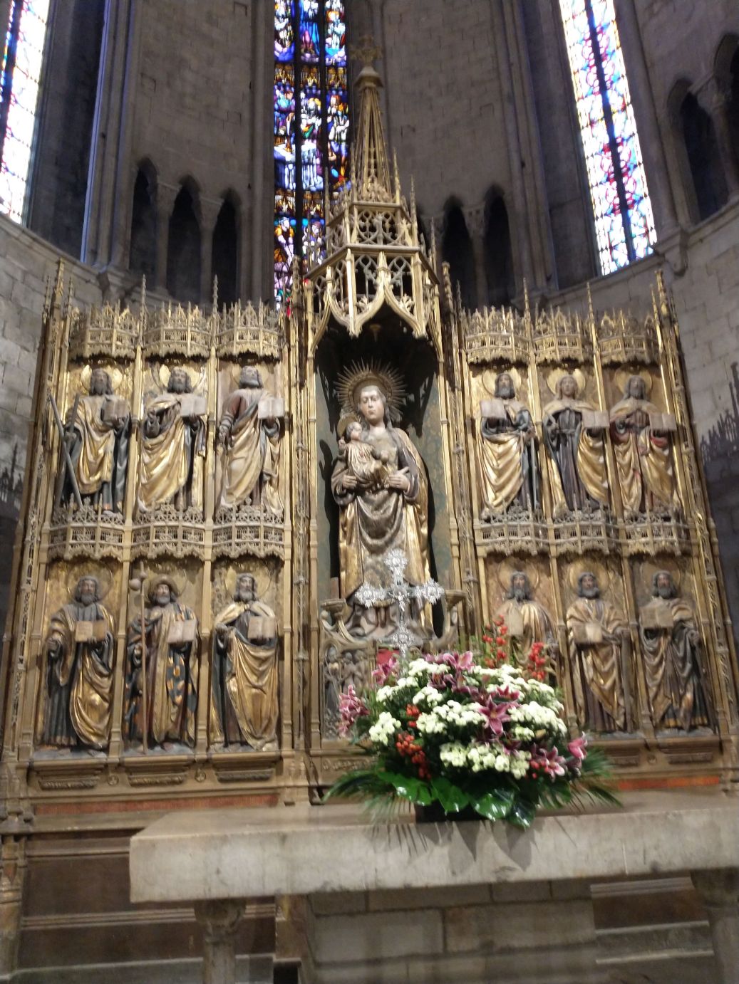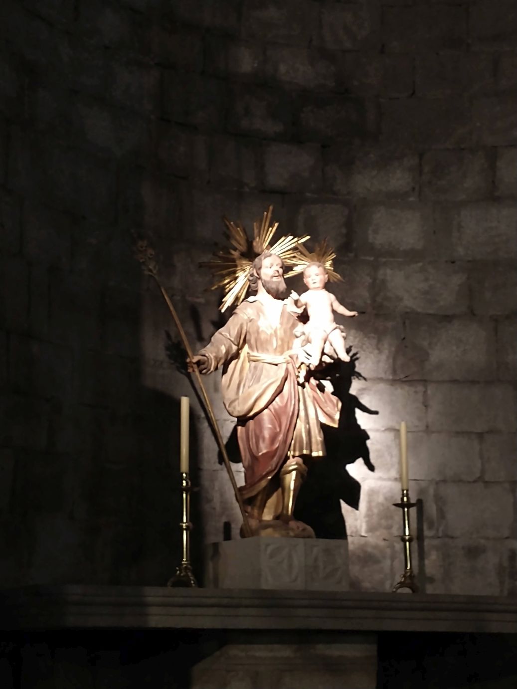 Confusion aside, this was so worth finding. The first cathedral in Girona, dating from the 500s, it was the city’s cathedral until the 900s. The chapels are beautiful, adorned with marble and gold leaf. It’s not as immense as the current cathedral, but maybe more beautiful in its size and shape. The artwork is impressive as well – and here there is a chapel for Sant Narcis, the patron saint of Girona. Here we finally see a depiction of the flies that saved Girona in a huge painting next to the chapel. All right, finally, the flies!