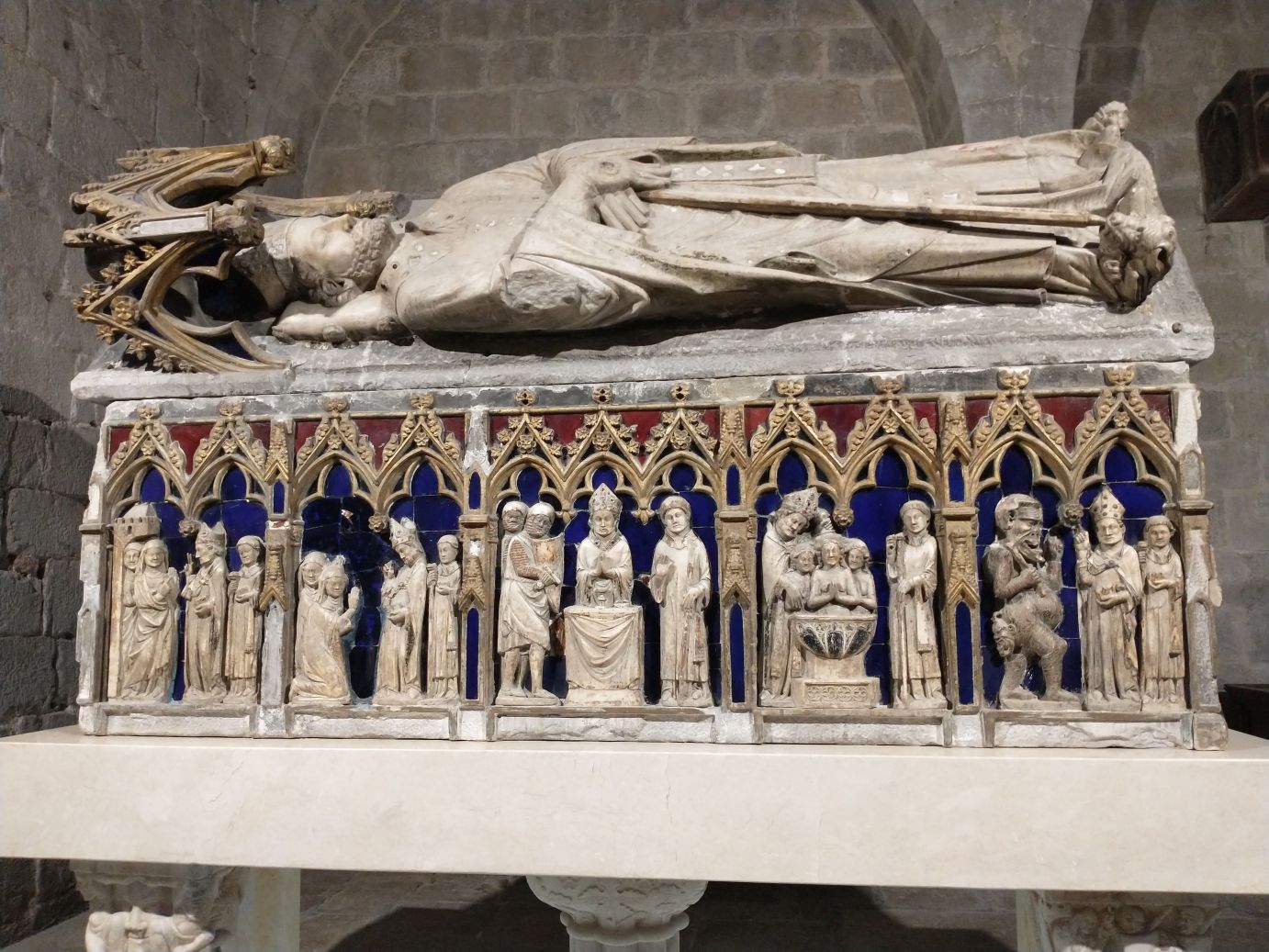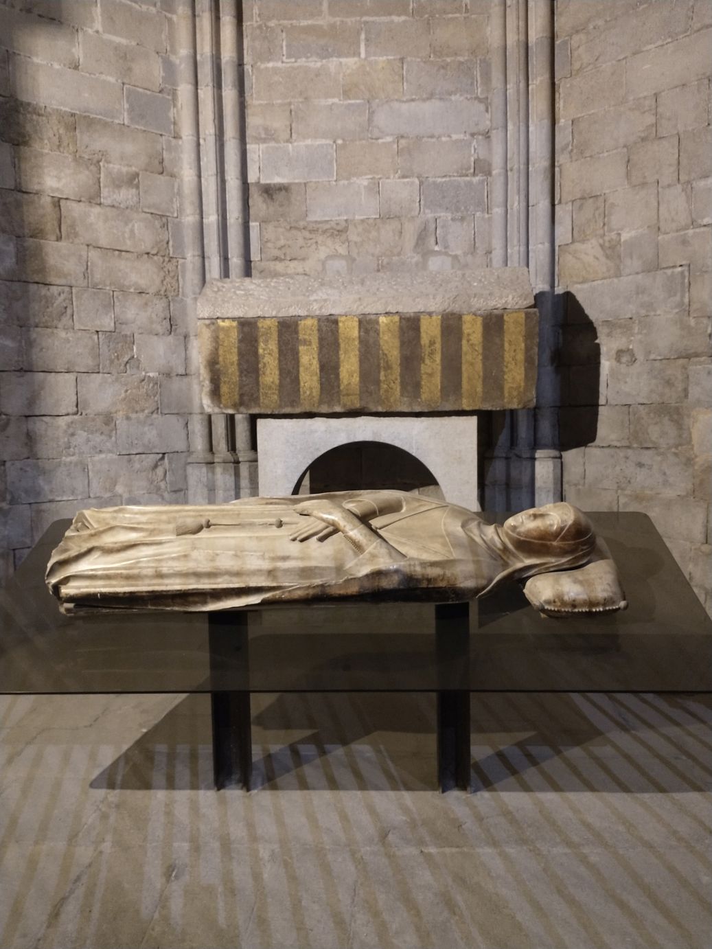 Once finished, we head back into the old city to continue on our museum tour, circling back around past the illusive Basilica entrance and on up the Cathedral stairs to the Art Museum, which is a combination ticket with the Cathedral. It is a nice museum, but it doesn’t really hold our interest as we wander through displays of Romanesque and Gothic art. There are a few intriguing pieces, a ceramic box that looks like a wooden chest, a restored fresco, bas relief carvings, etc.