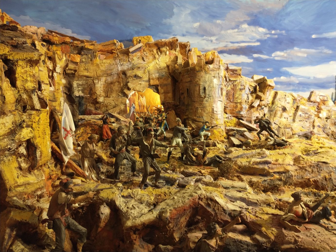 I’d say we are getting museum’ed out, but our next stop is the City History Museum, which is far more interesting. Here, on the site of a former Capuchin monastery, the museum depicts the evolution of the city. From the first human remains found in the area to the transition to democracy after the Franco dictatorship, there are tons of exhibits with everything from slabs of mosaics to Roman carvings to a totally realistic diorama depicting the civil war. For us, a much better experience. Including the carving of the really odd animal hanging on a column. I don’t know what it is, but it is oddly appealing in a creepy kind of way…I’m thinking it will be my next pottery project. LOL.