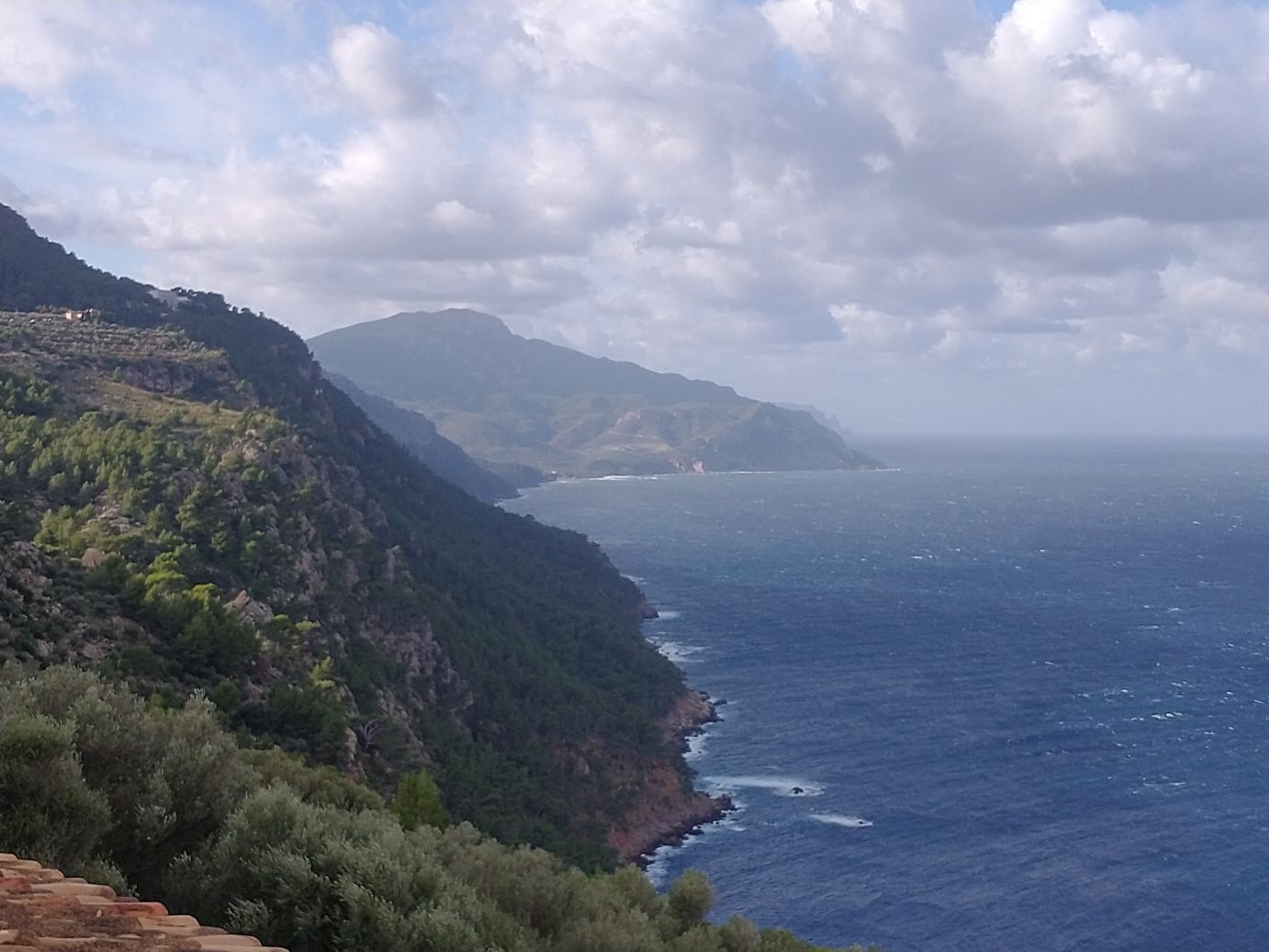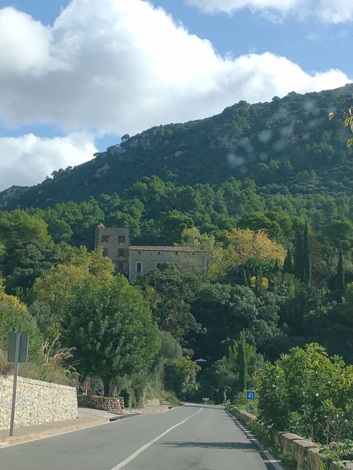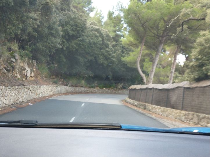 We do find the car and we easily make our way out of Palma and up the highway and into the mountains, passing signs for Soller (where we have also been before) and exiting the autostrada in the direction of Valdemossa. Today are driving out to the other side of Palma, past Valderossa, to visit Son Marroig, the residence of the Archduke Luis Salvador and the site of the Sa Fordada rock formation. It is supposed to be very picturesque with gardens and also a trail leading down to the rocks. Some of the information we have seen says the gardens and outside areas of the residence are closed now that it is off season, but we’ll take our chances.