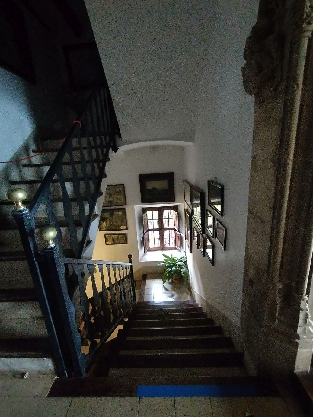 The house itself isn’t all that grand, but the rooms inside are quite interesting and decorated in the original 18th and 19th Century styles. We pass through the little chapel, filled with photographs that chronicle the Archduke’s life. Then up the narrow staircase with the gorgeous blue, yellow and white decorated tiles embedded in each riser, to simple bedroom and into the main museum area, a large room containing artwork from major painters of the time as well as display cases chock full of ship models, artifacts and old books. Finally, we enter the enormous dining hall with beautiful wood table and upholstered chairs – with a portrait of the Archduke himself – before traversing down the stairs and heading out into the garden area.