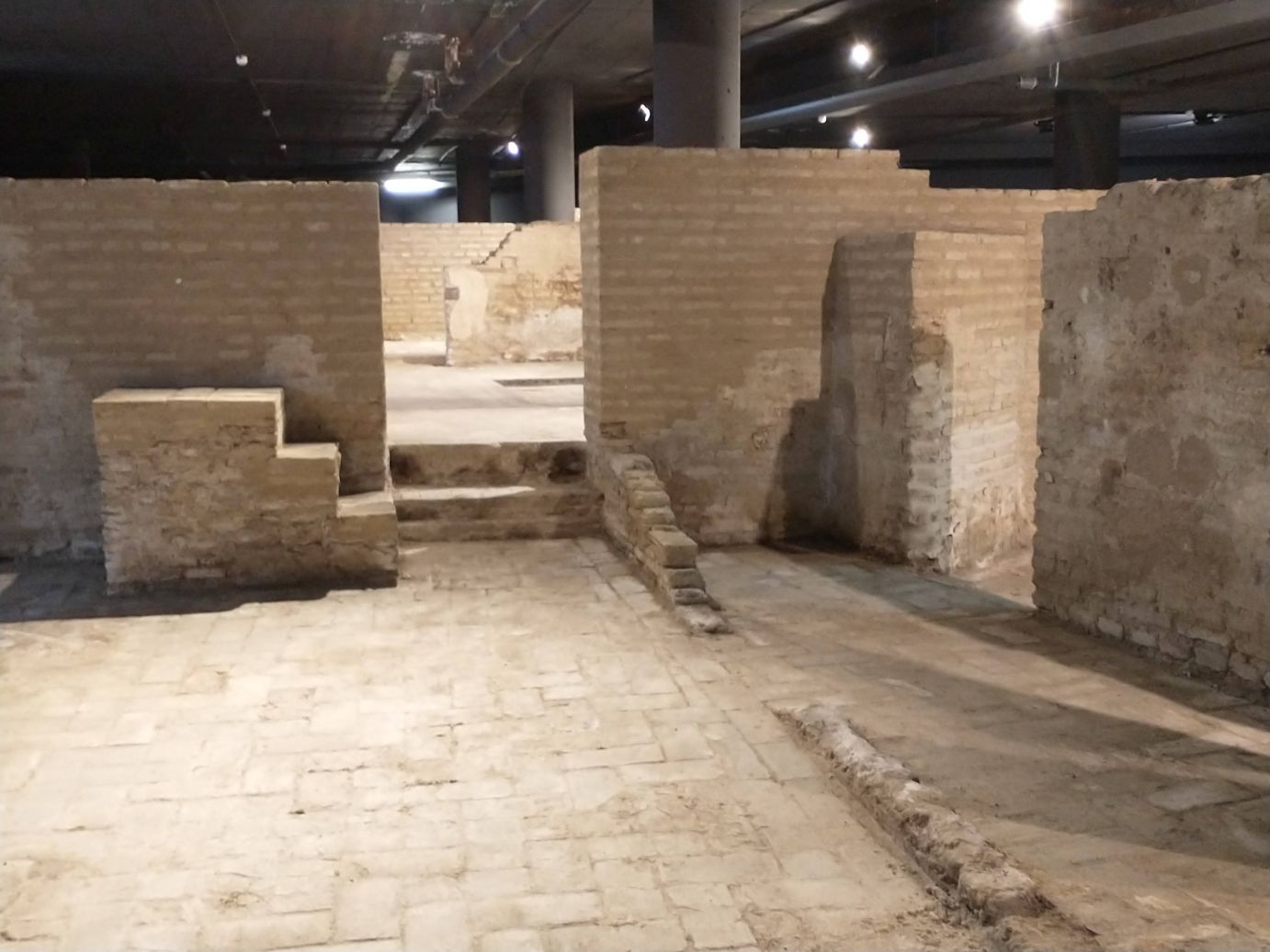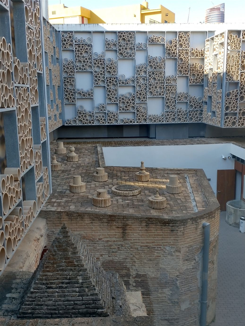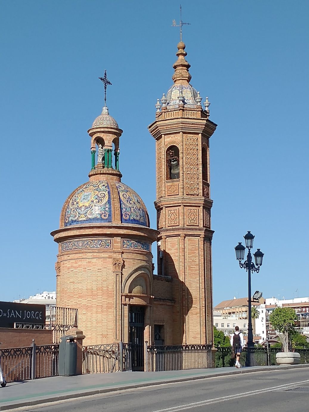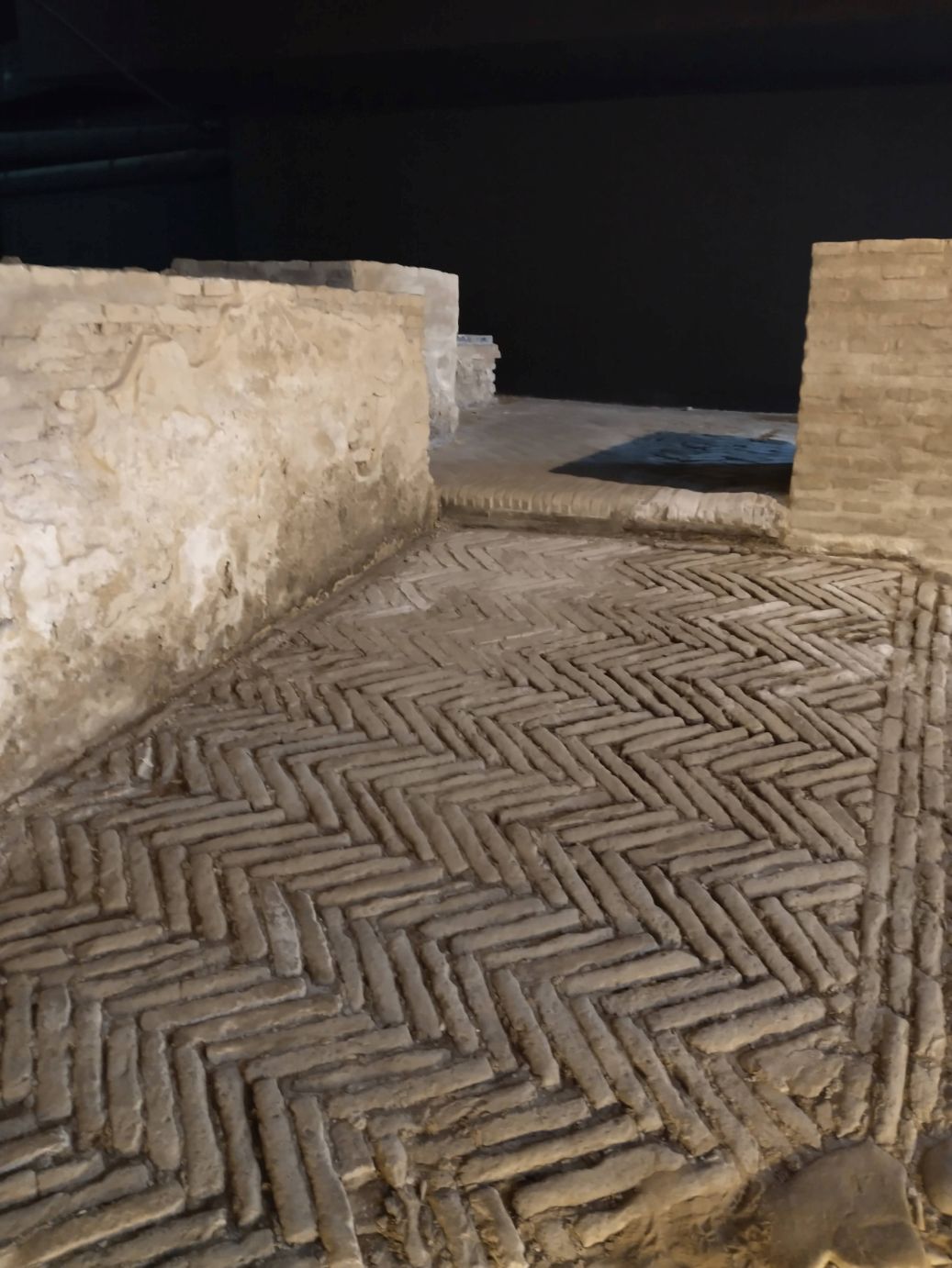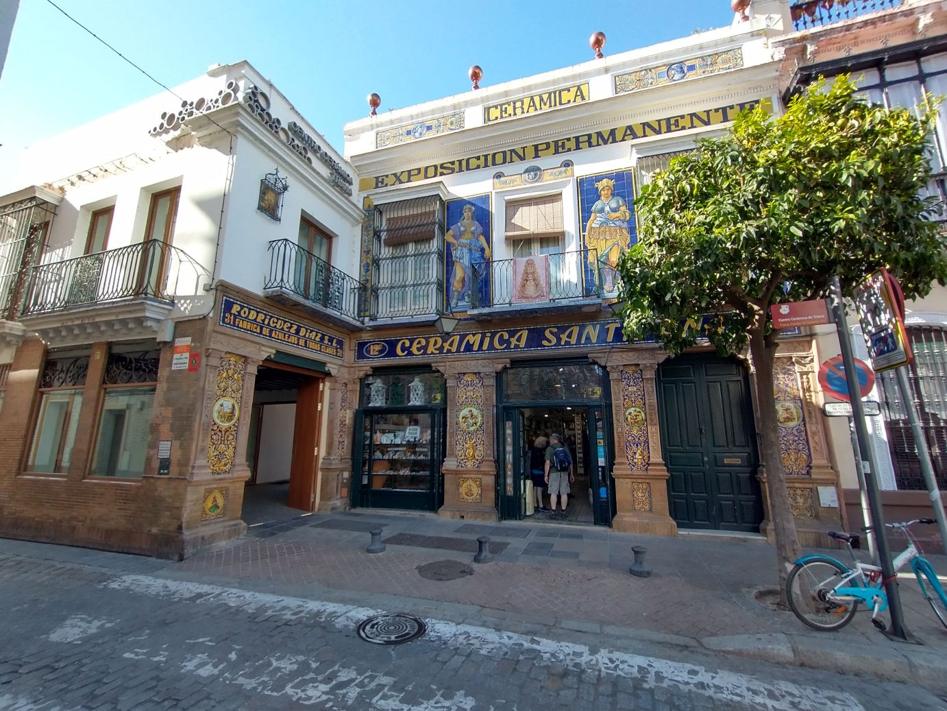 Going off script, we head toward the Triana Ceramics Museum. I had read about this but didn’t think we’d ever make it up here or have time to see the area. Triana has a storied history as the ceramics center of Seville, and the museum is actually located on the same property that once was the Santa Ana Pottery factory, which was in operation until the end of the 20th Century. When converting the buildings into the museum, they unearthed kilns dating back to the 16th Century and incorporated them into the displays. The layout is a labyrinth of display cases and open-air stone rooms and of course the huge kilns used in modern times and ancient. There are really interesting (to me at least) explanations of the history of the area, the clay used from the banks of the river, the factory, the processes, everything.