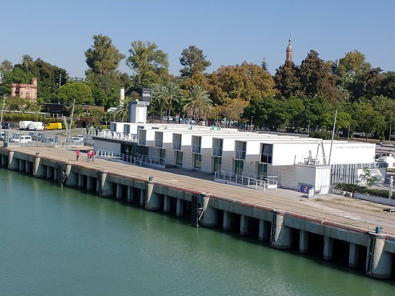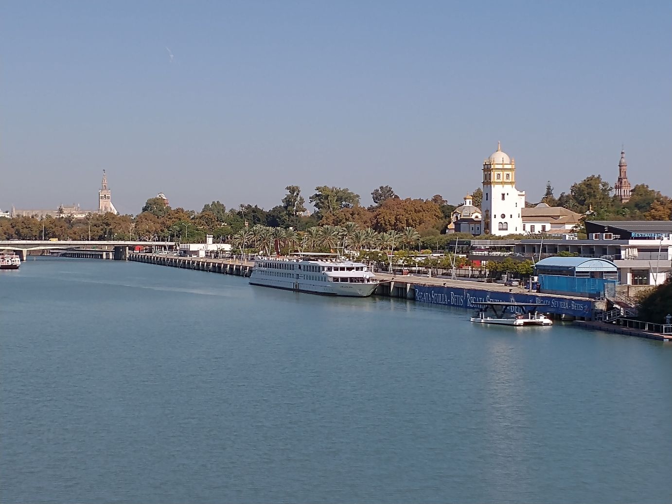 And then, voila! We are here. Approaching the new ship terminal right below the main historical district of Seville. What a fabulous way to arrive! And we’re here for 3 days – even better. We get to just walk off and explore – not drive 2 hours in a bus from Cadiz for a limited time visit. And walk off we do! Within minutes of being cleared we are outta there – and out here on the seaside promenade ready to begin our explorations.