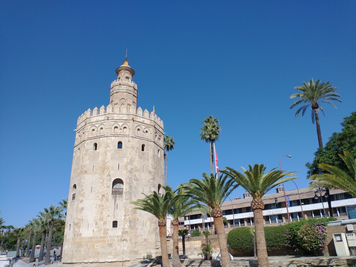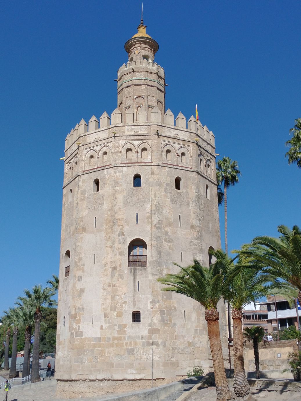 Retracing our steps down the riverfront promenade, we figure we’ll stop for a quick drink at the New York bar. But once there, we find out all their beers are in cans (and nothing local, think Corona, Heineken, etc.) and they have no wine. Nope – wrong – we’ll keep going. Passing the Torre de Oro again – this time completely devoid of people providing some great photo opps.