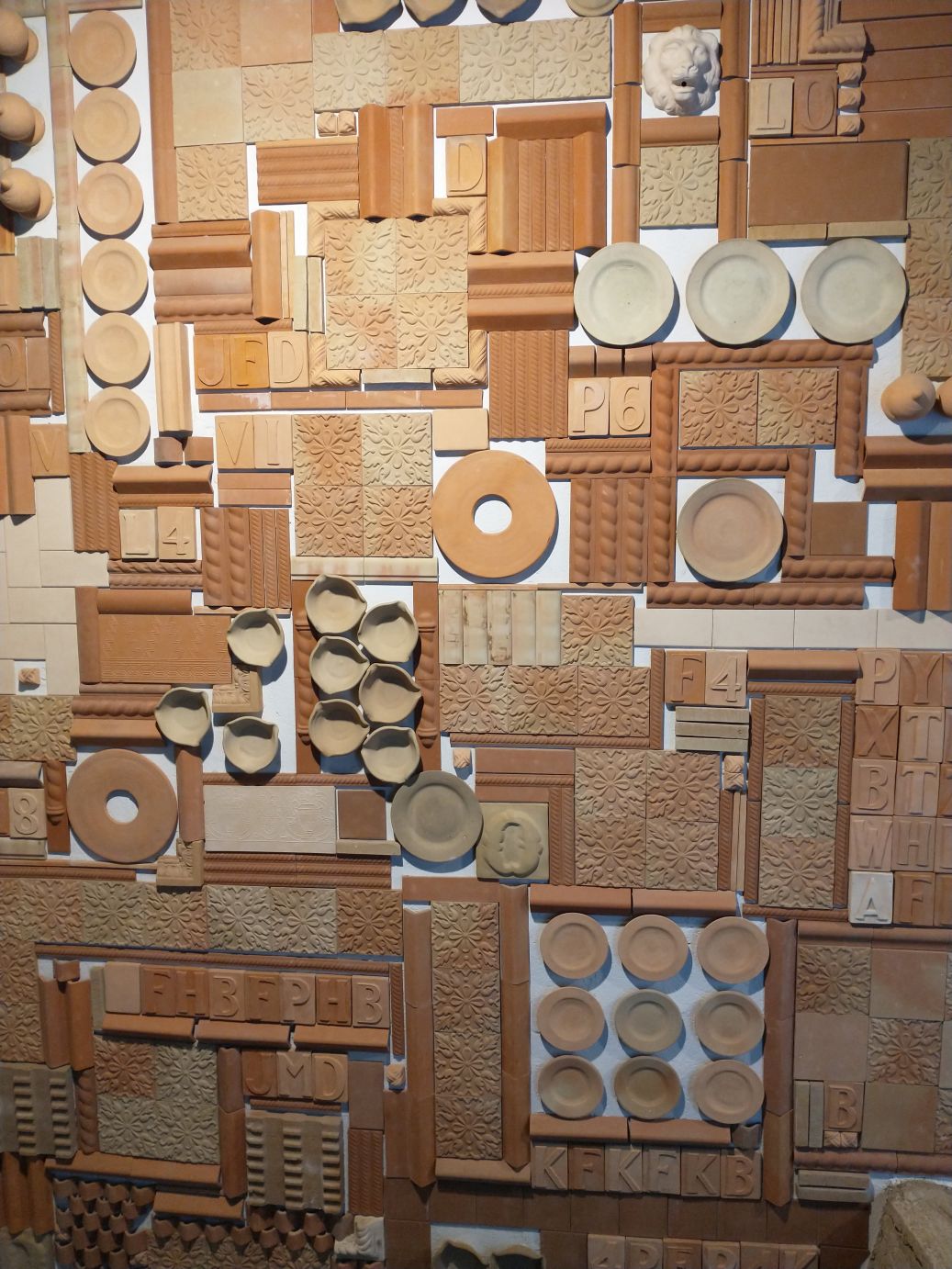 In addition to just the basics on pottery and the area, there are also fantastic samples of different pieces and “sign” tiles made up into great big wall murals, benches, vases, intricately painted tiles that, when pieced together make for exquisite decorations depicting nature or random designs, and the most incredible modern art display of terracotta tubes that line the walls of the exterior courtyard. You just can’t get enough of it (well, I can’t!).