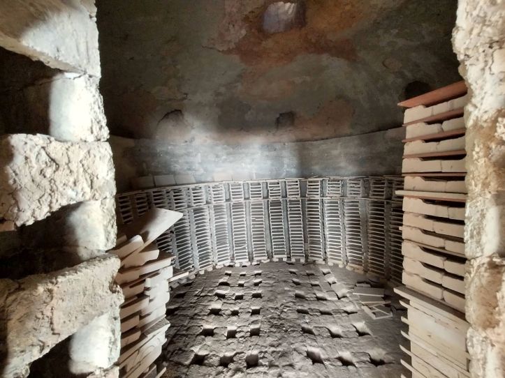 The kilns are probably the most fascinating. They are monstrous stone creations with venting holes and little stone chimneys on the top. Some have shelving, probably the more recent kilns, others are just cavernous spaces with different vessels placed strategically here and there to illustrate how they were used. Pretty neat.