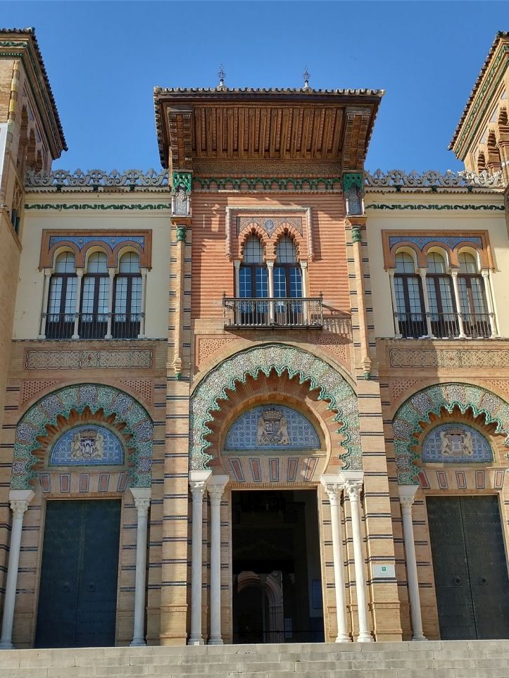 Done with our refreshments we walk the short distance to the museum, which is housed in a building that demands equal billing with the museum itself. A gorgeous building, built in 1914 as a Mudejar Pavilion (which you can see from the arches and the decorations), it was originally designed as an art pavilion for the Ibero-American Exposition in 1929, eventually being turned into the Traditions museum in the 70’s. In our lectures on board, we learned that architecture in Seville is a mix of styles not seen anywhere in the world. A hybrid of Mudejar (Islamic) and Gothic (Catholic). You can definitely see that expressed in this building on the plaza.