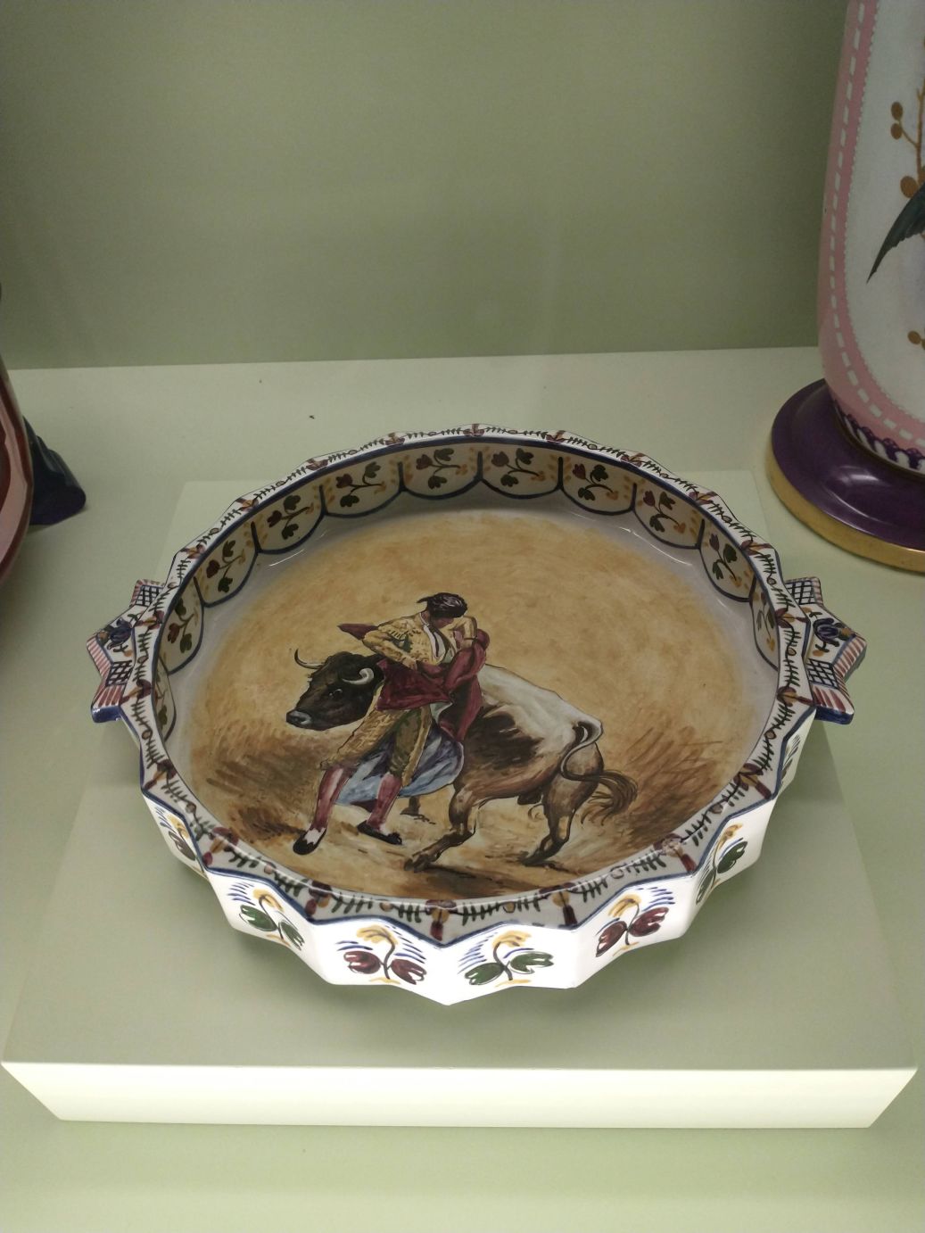 Inside the facilities are laid out in a block fashion around an enormous and very picturesque courtyard filled with Islamic architectural designs. Rooms extend off the first floor, including a special exhibit, as well as all around the 2nd floor and the basement level. The whole idea of the museum is to give a history of Andalusia from the perspective of the traditions that have existed from time immemorial. Truly a fascinating collection of artifacts. An ivory inlaid shotgun depicting a dog running down the barrel chasing after a reptile of sorts. Ceramic bowl in the shape of a bull ring with the matador doing battle painted inside the bottom of the bowl. Pottery from the “Barber of Seville” dated in the 1800s. Displays and explanations of plinths, techniques for making different tiles such as cloisonne, which replaced what they call the “dry string” method. Examples of every different tile technique along with a typical studio set up. Fabulously gorgeous glass vases etched with gold flowers. Wine making paraphernalia. Knives. Furniture. A huge wide variety of traditions and crafts spanning centuries.