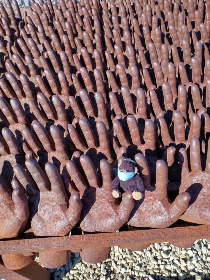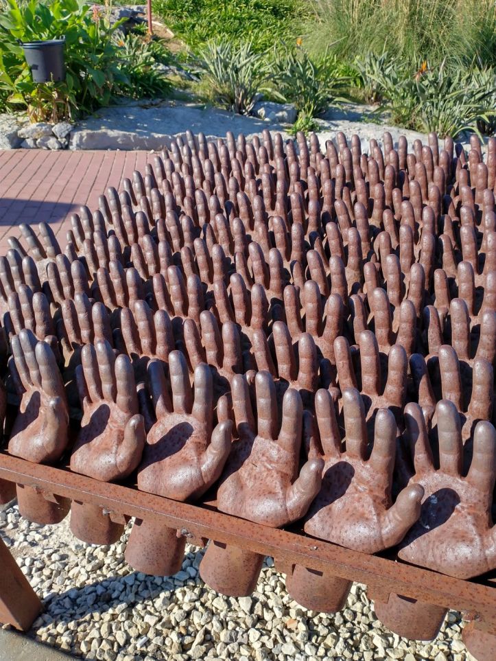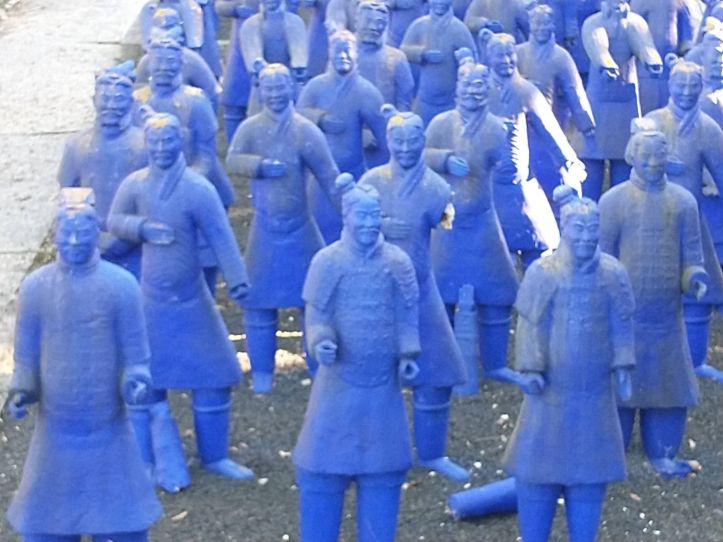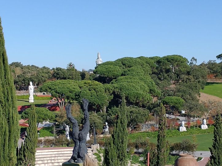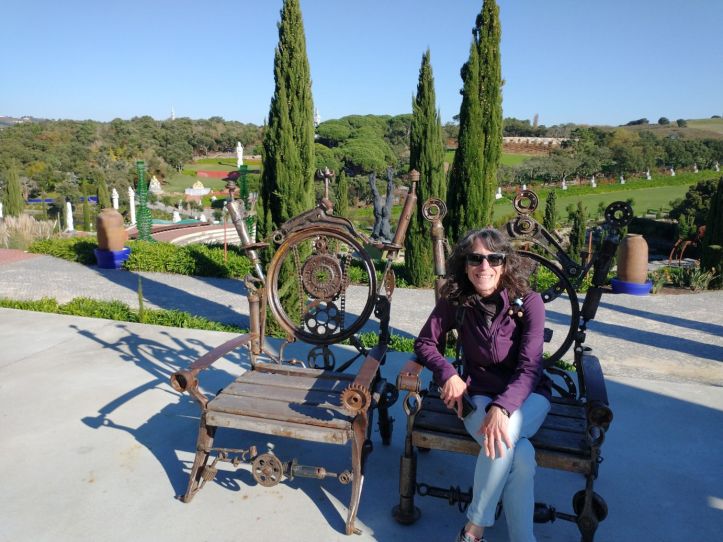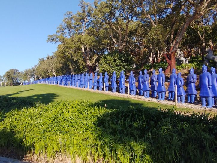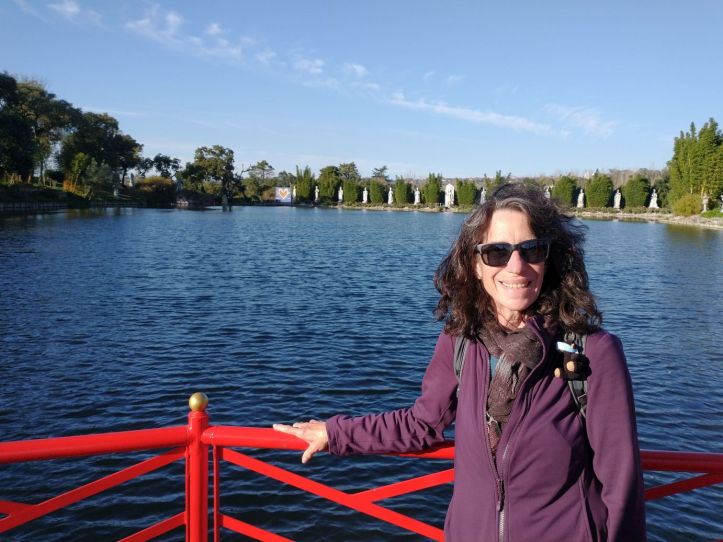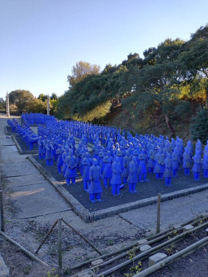 And good thing we didn’t. This place is just astonishing. From Koi ponds to bamboo forests to Japanese gardens and ponds, to Giant Buddha statues and pagodas dotting the landscape, an African art garden, contemporary art by international artists, a replica roman theater, bizarre hands lining the top of the theater, what look like weird metal thrones made of recycled junk, a great little café by the giant buddha with wine and beer (a must after walking all over the park), even 600 hand-painted replicas of the Chinese terracotta warriors, oh, and a vineyard to boot – we could definitely spend a whole day exploring all the parkland and nooks and crannies. As it is, we only have a couple of hours before we have to get back to beat the sunset (just easier driving in the daylight) but we make the most of the time we have.