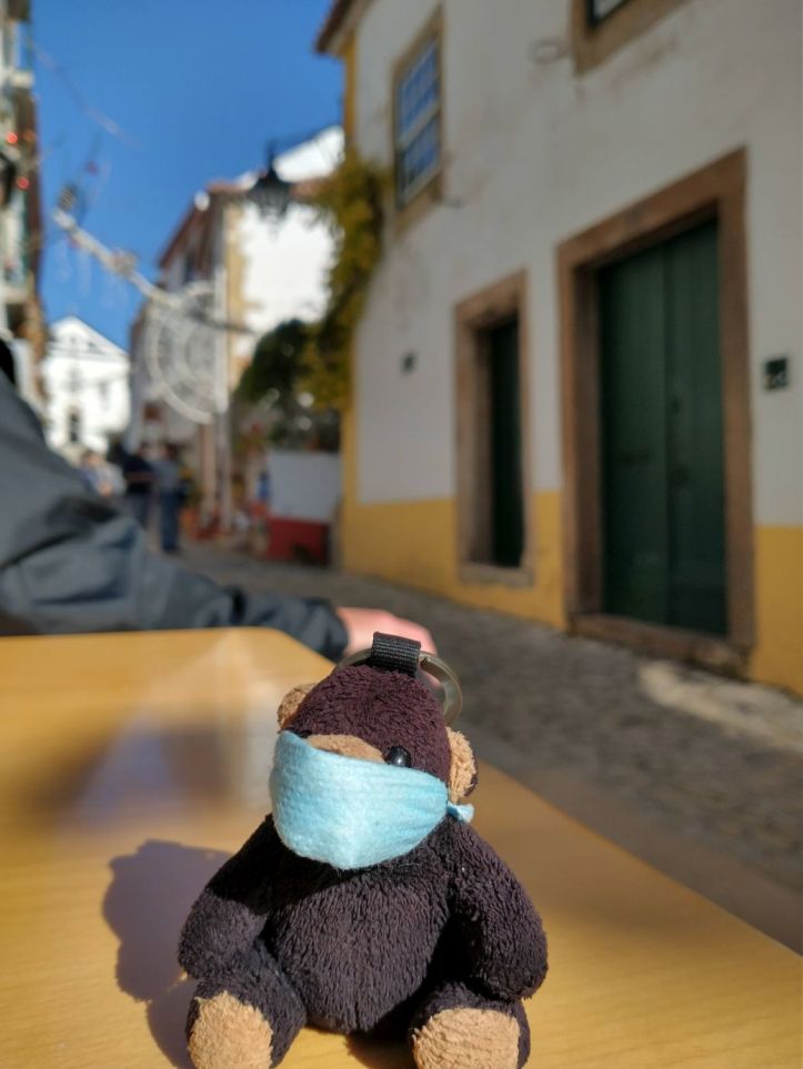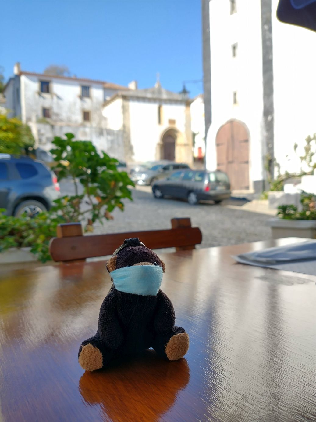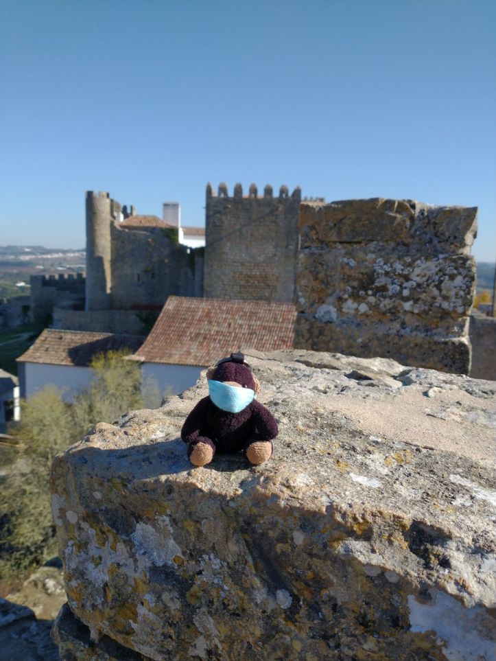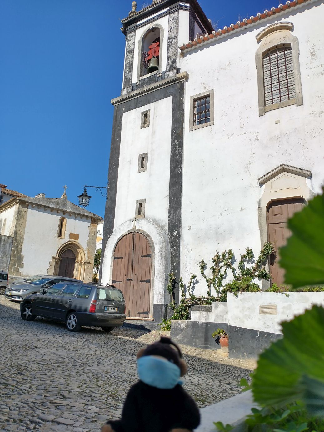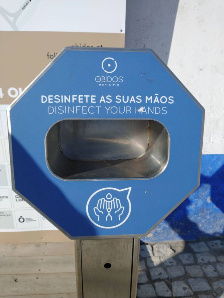 Making good time, we pull into the parking lot that we found easily (yay), pay, lock up, grab a little map/brochure from the TA and head toward the Porta da Vila, the town gate. In the parking lot there is a mask vending machine. Yes. Vending machine. And a hand sanitizing station! Nice. I have a whole walking tour mapped out, including walking the walls of the ancient medieval town instead of just walking down the main road and so far, all is going according to plan.