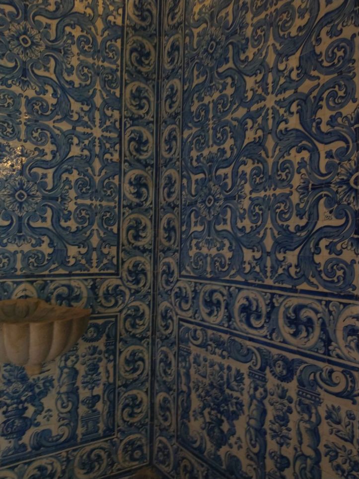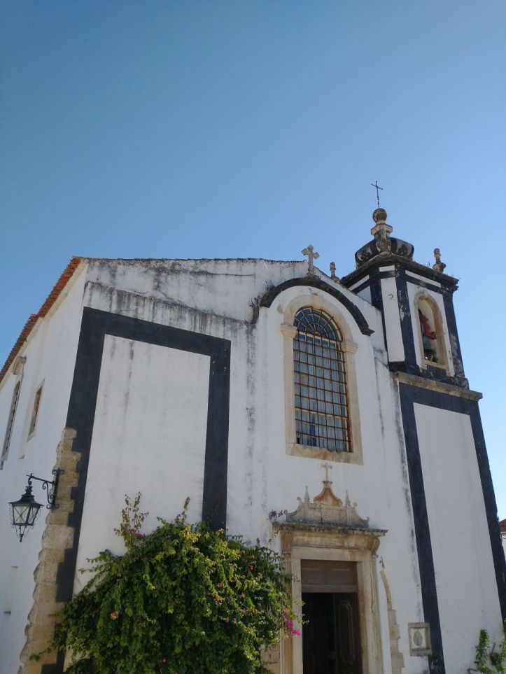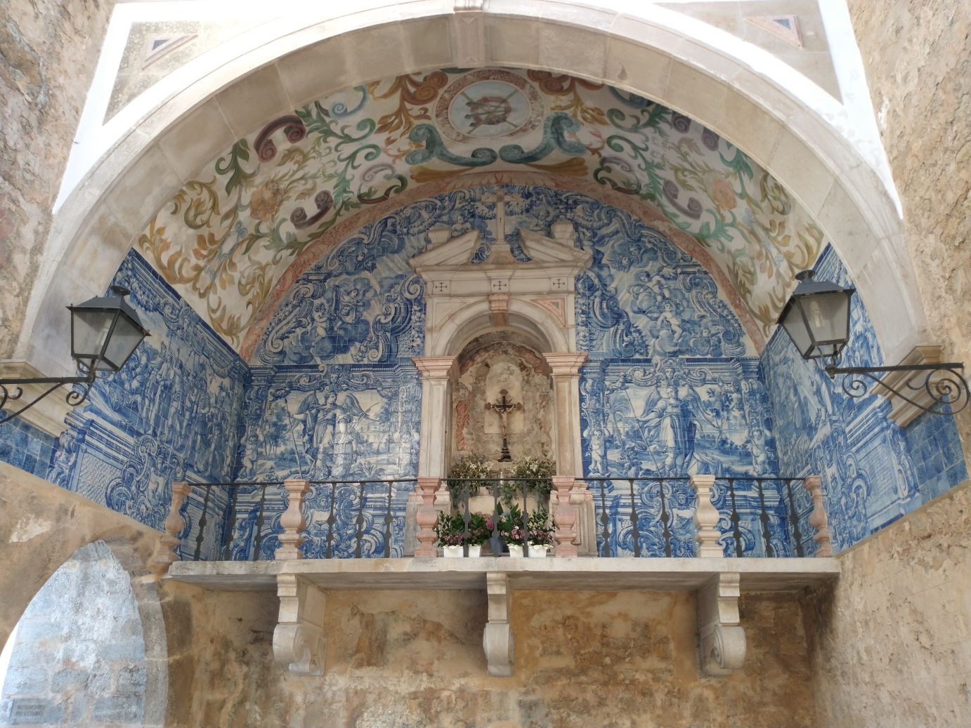 Then it is just wandering the picturesque streets, with pretty white buildings glowing in the sun and red flowered vine-like plants creeping up their walls. Walking down Rua Direita, we stop in a couple shops, then stop for a cappuccino and our first shot of Ginja, the local cherry liqueur served in a chocolate cup for which Obidos is known. Steps from the café is the main square, Praça de Santa Maria, where main church, Igreja de Santa Maria is located. We spend some here snapping photos of the façade as well as the interior of the church, resplendent in its blue tile murals and gold filigreed altar embedded with portraits of saints.